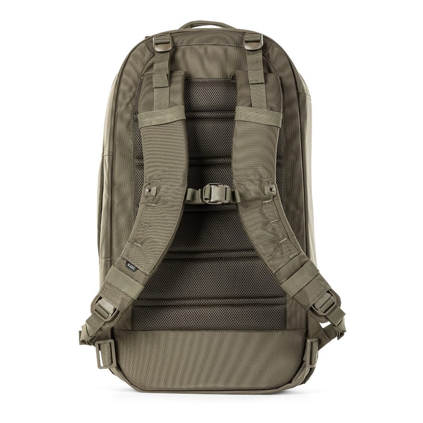 The LVC Covert Carry Pack has your six while deep undercover. 5.11's signature CenterLine™ design and tuckable labels help you keep a low profile. The outside is equipped with quick-release shoulder straps, a removable sternum strap, a side carry handle, and lower webbing straps for extra cargo or for attaching the 5.11 LVC6 bag. Dual front pockets are designed with admin organization and MOLLE webbing so you can organize your loadout to fit the mission. Inside the main compartment, a suspended padded laptop sleeve and a mesh zippered pocket give you more storage. The secondary weapon compartment has a reinforced muzzle pocket, web loops, and two rifle retention straps when you need to bring the heat. A 3" drop-down extension in the primary weapons compartment can accommodate compact or full-size firearms. Tri-glides for optional waist belt attachment, an aluminum frame HDPE board, and comfortable foam padding with a flex cuff channel on the back make this pack easy to wear. The LVC series pack that seamlessly combines comfort and covert.