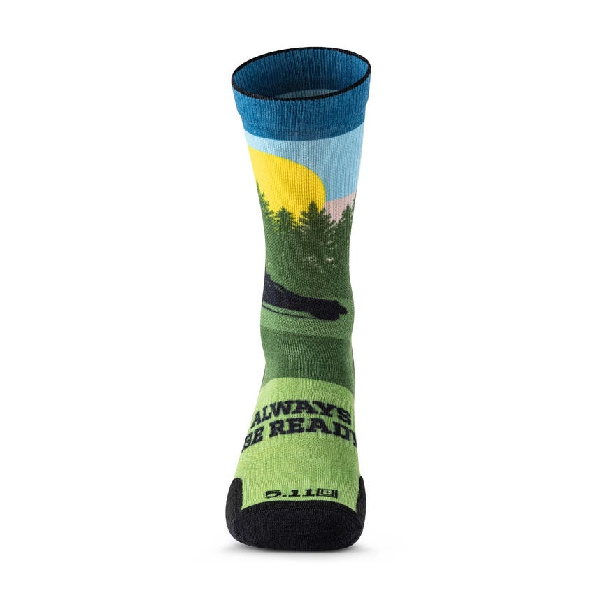 Step into adventure with the Sock & Awe New Horizon socks. Featuring a serene landscape graphic with the inspiring motto ?Always Be Ready,? these socks are perfect for those who prefer their roadrunner spirit with a dash of sunrise tranquility. Designed for comfort and crafted with a nod to preparedness, these socks are your stylish companion for whatever path you tread.