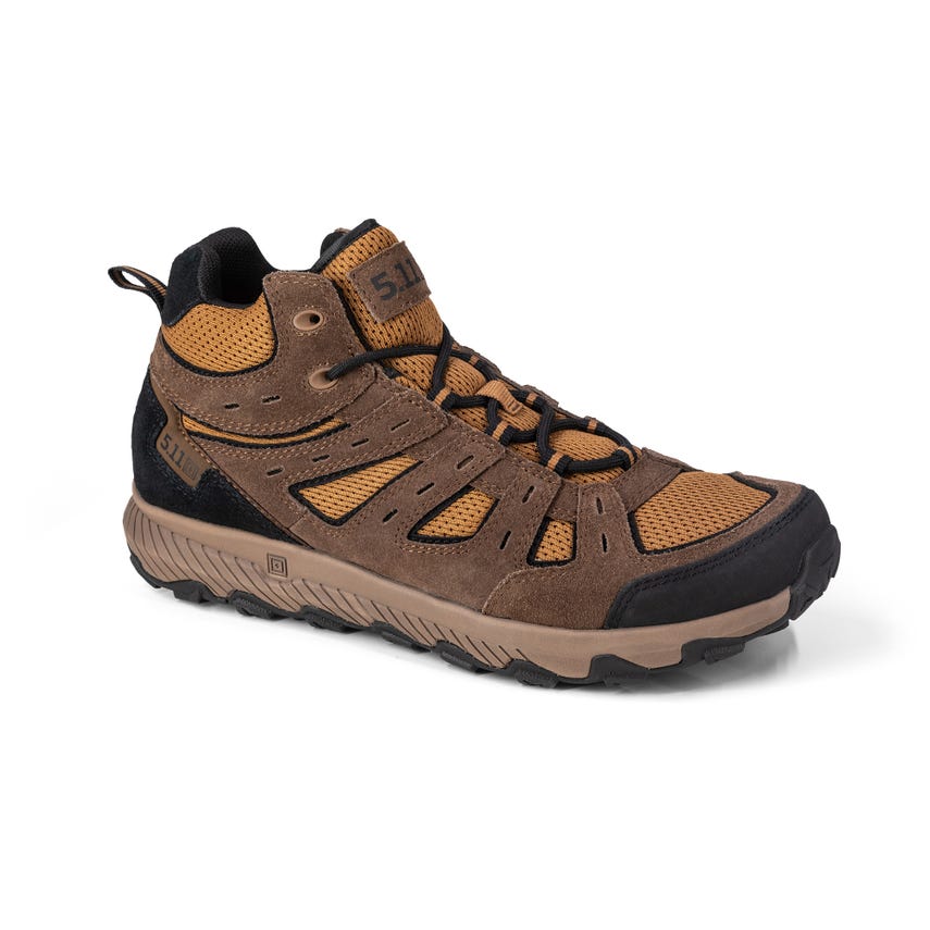 Lace up a pair of 5.11® Ranger 2.0 Mid shoes and your feet will stop complaining, even after your favorite outdoor pursuit or marathon family outing. Those little piggies will be tickled pink to learn this mid-top shoe features an Ortholite™ insole combined with the 5.11® Echo Lite high-rebound EVA midsole to ensure comfort. Built-in All Terrain Load Assistance System (A.T.L.A.S.) technology delivers unparalleled support wherever you roam. A removable support plate increases the support when you’re carrying a heavy load. The suede upper and breathable mesh construction keeps your feet cool while the rubber toe cap adds durability and protection. Sure-grip soles maximize your ability to stay vertical on just about any surface.