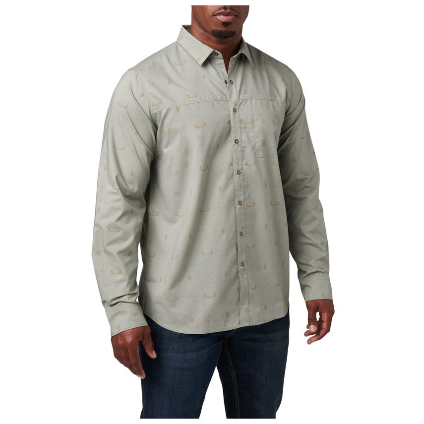 The Igor Print Long-Sleeve Shirt sports a contemporary look that works just as hard after hours as it does on the job. Constructed from 60% cotton and 40% polyester poplin, the Igor provides long-lasting comfort and wear. Beneath that exterior beats the 5.11® functionality you've come to expect. Our center-front RAPIDraw™ snap placket enables fast access to EDC gear, phone, wallet or passport. A fold-down collar, shirt-tail hem and button-adjustable cuffs keep everything on point. The on-seam pocket on the left chest provides traditional storage for items that don't require added security. Imported.