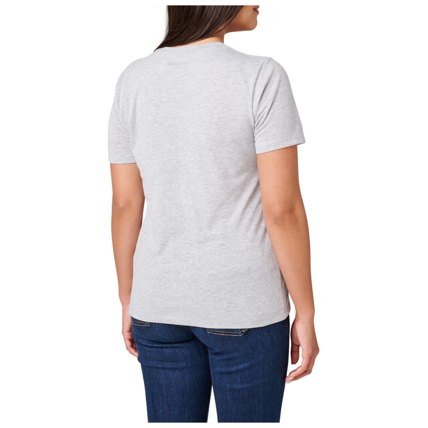 Show your strength with the Women's Strong Aim Tee by 5.11 Tactical. This cheeky design features roses and directional arrows with the bold statement "Five Eleven Trust in Training," blending floral elegance with tactical flair. Crafted from ringspun cotton/poly blend, it promises comfort while resisting the test of time. Embrace empowerment with a touch of humor in every wear.