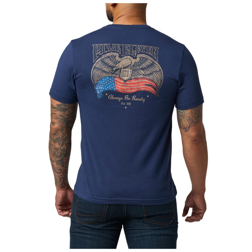 Show your patriotic spirit with the Birds And Banners Tee that screams "Always Be Ready" with a bold eagle graphic holding an emblematic banner. This tee merges style and substance with its durable, moisture-wicking cotton/poly blend, ensuring both comfort and longevity. Made for those who appreciate timeless design and lasting quality, this shirt stands as a nod to enduring resilience and readiness.
