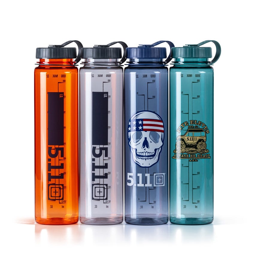 Hydrate in 5.11® style with our durable Hydration Bottle 32 Oz. This BPA- and Phthalate-free hydration bottle holds 32 ounces of your favorite beverage. An external fluid-level indicator makes determining when it's refill time a breeze. The wide-mouth opening won't slow you down and the no-leak lid makes this bottle an ideal piece of kit when the heat's on. This dishwasher-safe bottle is easy to clean and comes available in a variety of styles and colors. Don't sweat it - fill the Hydration Bottle 32 Oz. to the top and smash your goals.