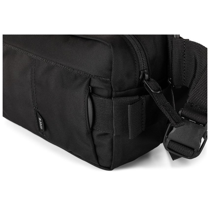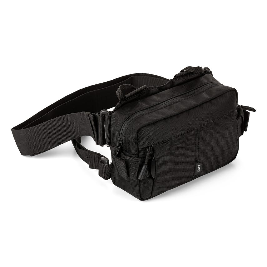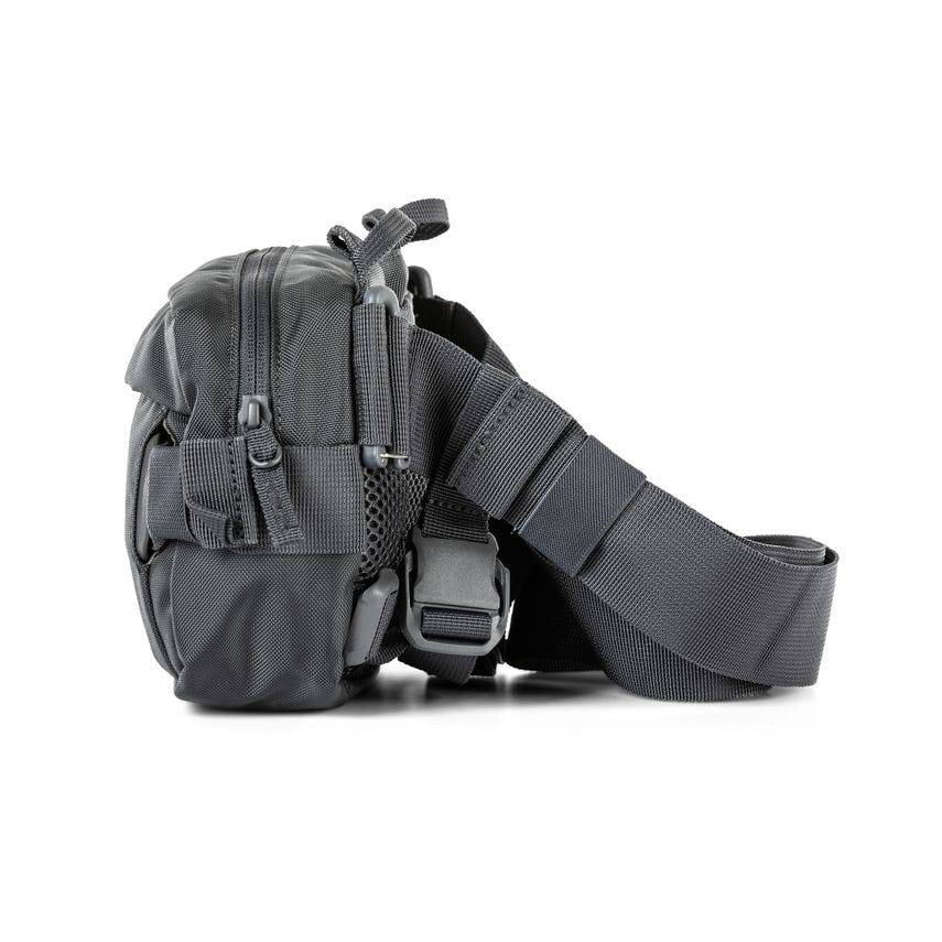 With an updated quick-release S/R buckle waist strap and easier to operate Duraflex® buckles, the LVC6 2.0 Waist Pack is the perfect “grab n' go” bag. Webbing on the top and bottom gives you the ability to attach to the 5.11 LVC18 backpack or LVC Covert Carry Pack for longer operations. On its own, it can be adjusted to fit around the waist or across the body and has a quick release for fast access to your gear. Additionally, a webbing strap has been included for stabilization around the waist or across the body so you can customize it to your mission. Inside the front zipper pocket, there is a loop back panel and mesh pockets to organize your gear. A hidden slip compartment between the main compartment and back wall, side compression straps, and a rear mesh pocket make this versatile pack a good fit for any operation.