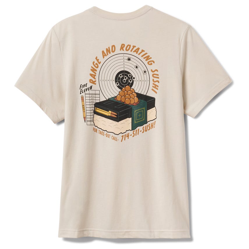 In the world of tactical fashion, why not roll with something a bit more... appetizing? The Sushi Mag Tee brings a playful twist to your wardrobe with its graphic of sushi and a target. This shirt is crafted from a soft ringspun cotton/poly blend, ensuring comfort while staying vivid thanks to fade-resistant inks. Perfect for those who appreciate fine cuisine and finer apparel.