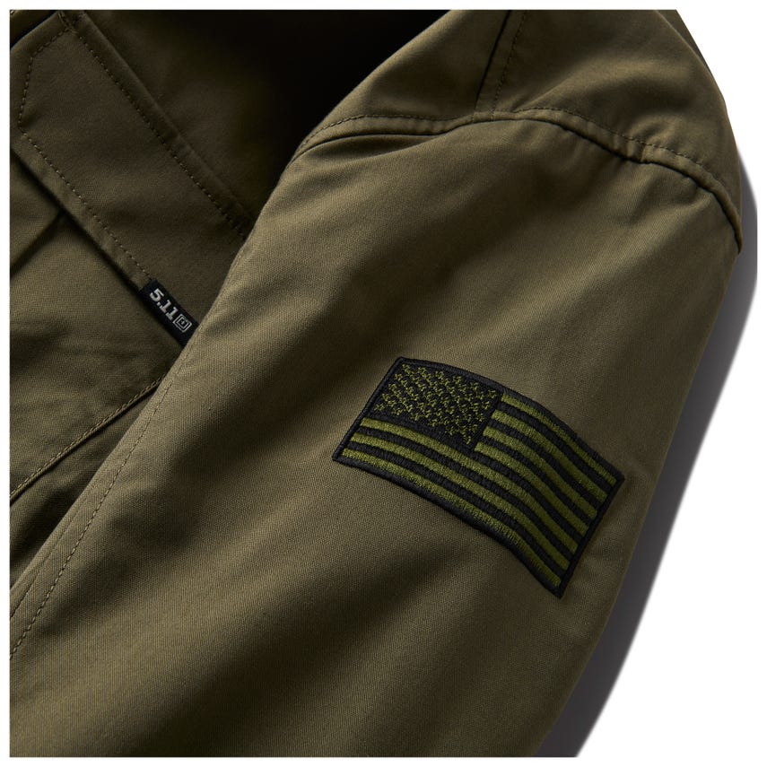 A modern spin on a classic military style, this Special Edition Watch Jacket is fitted with unique woven patches on both the left and right shoulders. The Watch Jacket is constructed from durable Flex-Tac® canvas that is treated with a DWR finish to repel rain, fluids, and stains. Putting functionality first, this jacket’s mechanical stretch and articulated sleeves allow you a full range of motion, and It has plenty of pocket space for carrying your essentials including two chest patch pockets, two exterior hand pockets with snap flap closures, and dual ReadyPocket Compartments™. The Watch Jacket features a two-way main zipper, an adjustable internal drawcord at the waist, and snap cuffs to keep the sleeves in place.