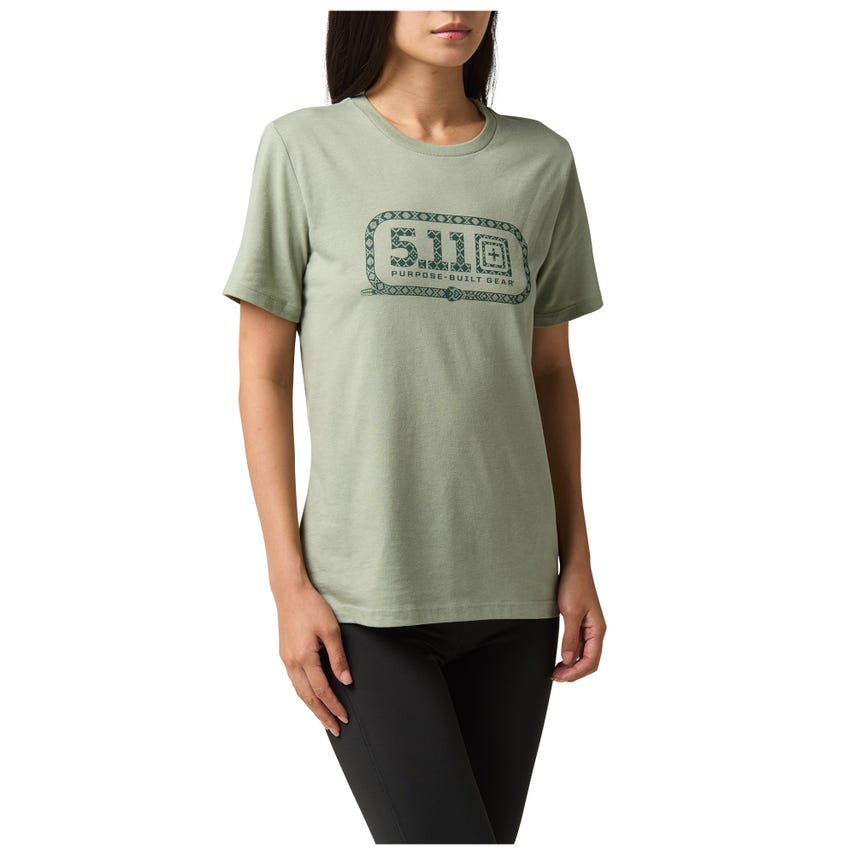 Wrap yourself in stealthy style with the Women's Snake Emblem Tee by 5.11 Tactical. Featuring a subtle serpent design echoing the mystery of ancient symbolism, this tee is crafted from a soft ringspun cotton/poly blend for all-day comfort. The design boasts fade-resistant inks, ensuring the emblem of strength and agility remains vivid. Perfect for both laid-back weekends and casual missions.