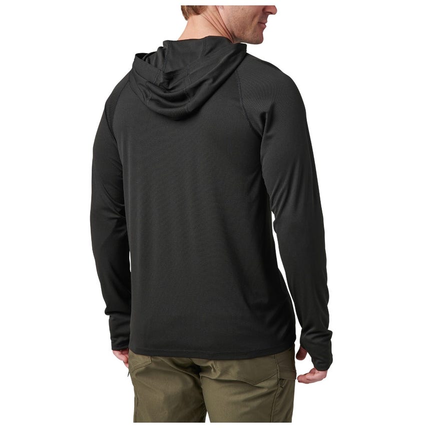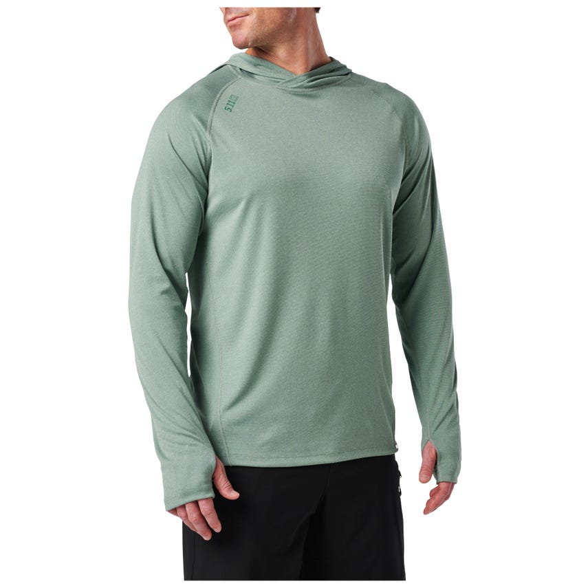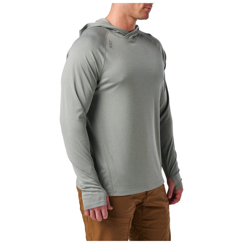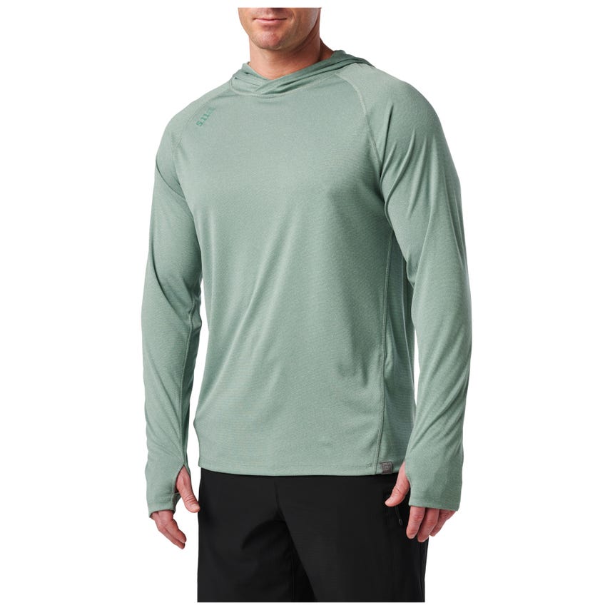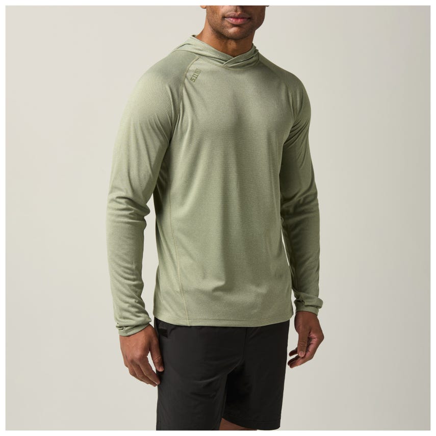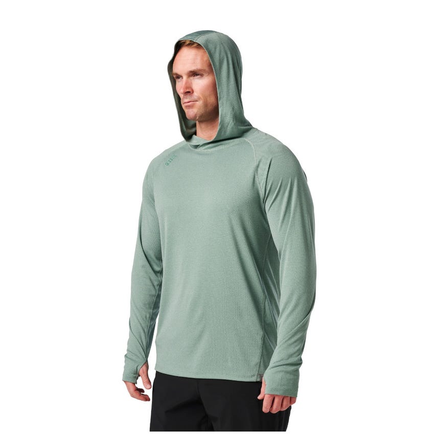 Combat UV radiation and stay cool doing it with the Sulli UV Hood Long Sleeve shirt. Our raglan long-sleeve shirt with a 50+ UPF rating provides complete upper body ultraviolet sun protection, including critical areas like your head, neck, and arms. Its three-panel hood blocks stray rays yet allows freedom of motion. Thumbholes keep the sleeves in place when you're working, training, or adding layers - a little detail that makes a big difference. This lightweight, form-fitting shirt features flat-locked seams for added comfort and exceptional durability. A wicking and anti-odor finish keeps you fresh from sunrise to sunset. The 5.11® Sulli UV Hooded Long Sleeve shirt is a UV shield for every outdoor adventure.