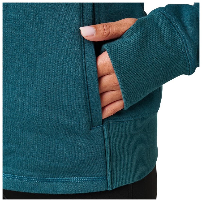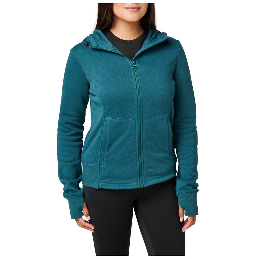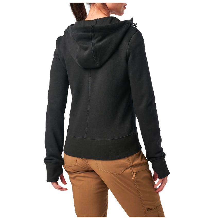 When the temperature suddenly drops, our Kimmie Full Zip Hoodie offers a warm hug. The 60% cotton and 40% polyester fleece construction provides a cozy outer layer on cool days and doubles as an inner layer when the mercury really plunges. An internal shock cord system keeps the stationary lined hood in place in heavy winds and while running. A durable front zipper design with chin guard works in tandem with rib knit cuffs and waistband to help beat the cold. Thumbholes hold the sleeves in place when you're training, working, or adding layers. Side entry welt hand pockets keep essential items at hand and fingers toasty warm. A reflective transfer on the right sleeve increases visibility during early morning and late evening runs. Fight the chill, with the Kimmie Full Zip Hoodie.