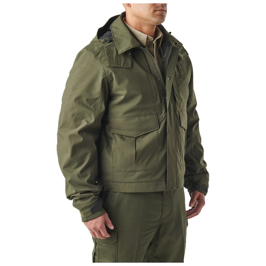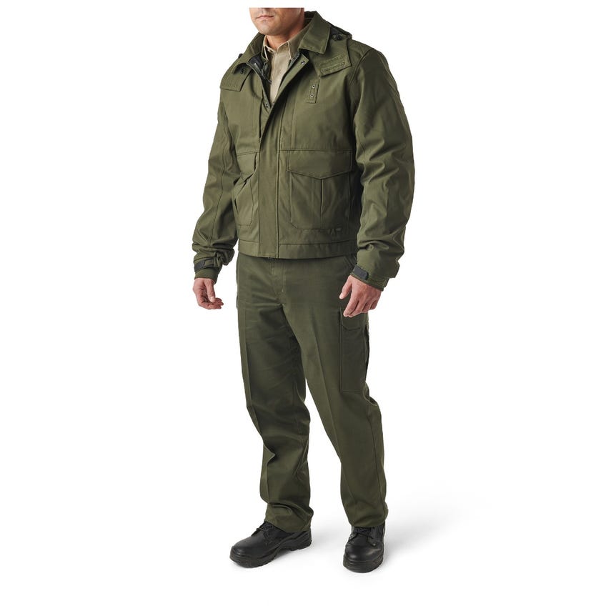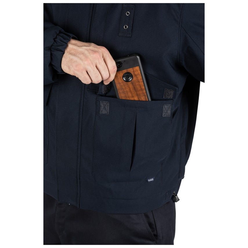 How do we serve law enforcement professionals better? We took our original 4-in-1 Patrol Jacket™ and re-engineered it to perform at an even higher level. The 4-in-1 Patrol Jacket 2.0 is now 27% lighter and offers mechanical stretch for improved flexibility in the field. Constructed with an improved 10K waterproof and 10K breathable fabric with DWR, the 4-in-1 Patrol Jacket 2.0 provides life-saving Blood Borne Pathogen resistance. The eight-pocket outer shell features badge tab, radio loops, camera loop kit, with a removable hood. A 5.11® ReadyPocket™ on both the left and right chest stores your phone, sunglasses or extra magazines. A new Quixip® system on the sides offers rapid firearm access and enhanced ventilation. The warm and breathable fleece liner, with improved lining, ribbed cuffs and collar, adjustable hem with shock cord and added document pockets, serves as a standalone three-pocket jacket when removed. You'll be ready to serve in the coldest weather.