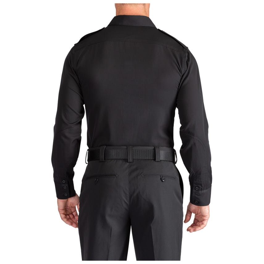 Made with 5.11's mechanical stretch Flex-Tac® 62% polyester / 38% merino wool twill fabric (5.1-oz.) and finished with Teflon® for stain and soil resistance. Men's and women's shirts feature traditional patch pockets with scalloped pocket flaps (with pen guides) and YKK® zippered center front closure. A kit with epaulettes, badge tab, camera/radio loop, name badge support strip and microphone loop are included in a separate bag.