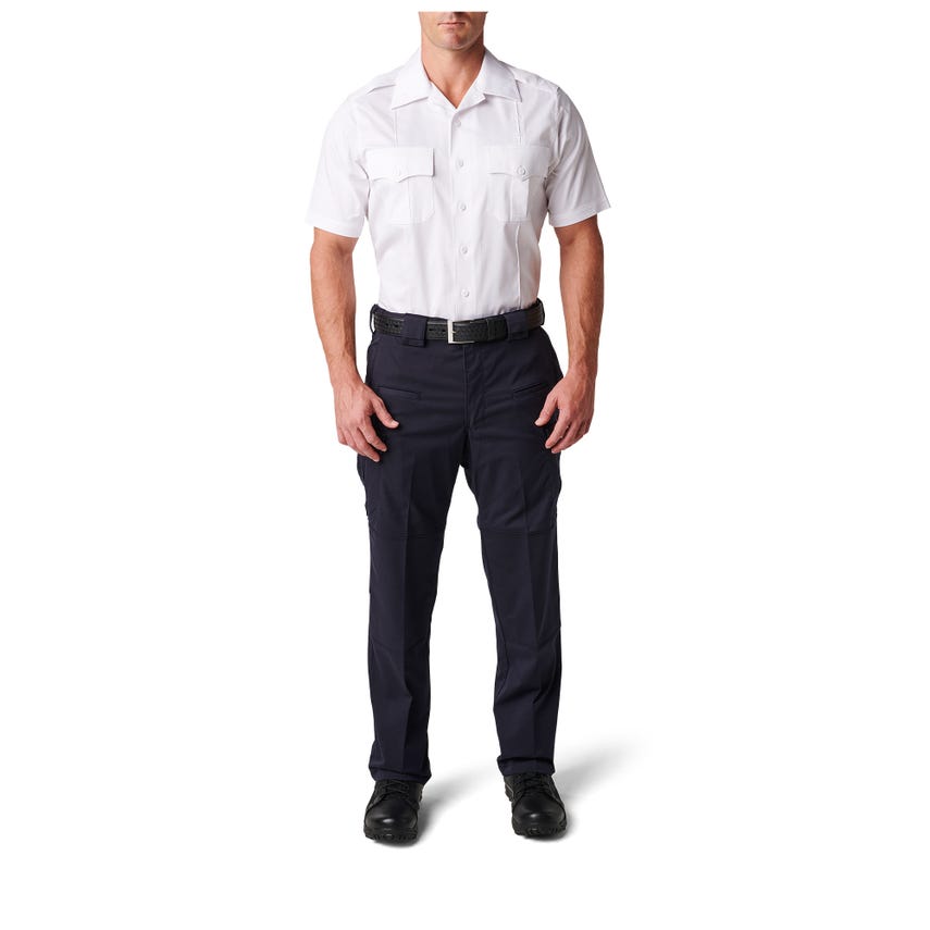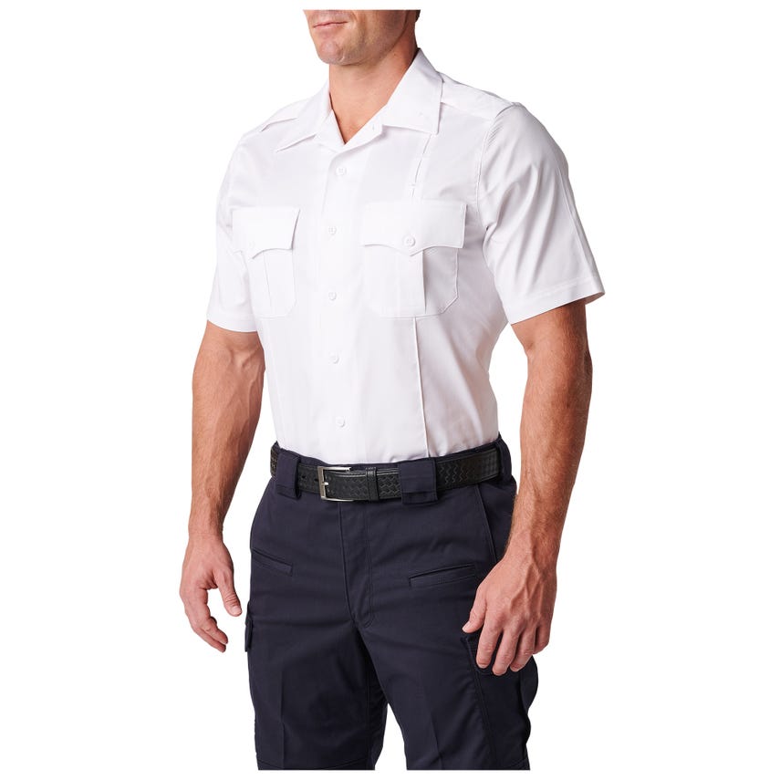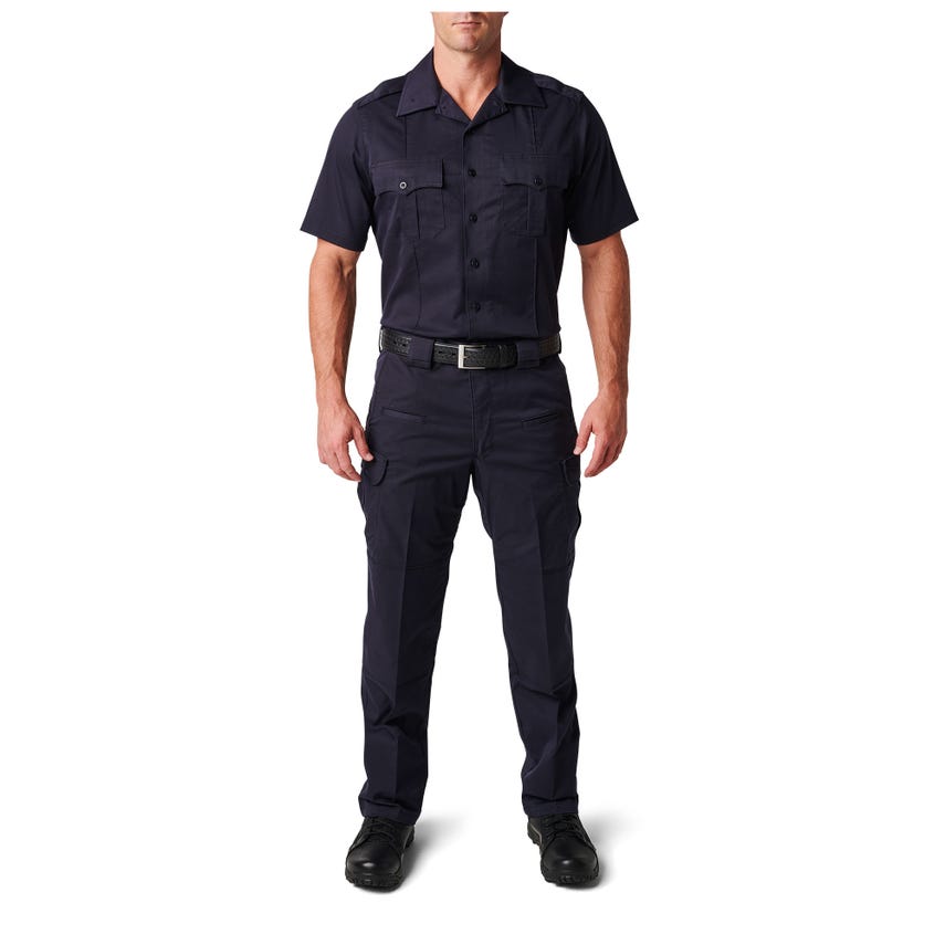 The NYPD 5.11 Stryke® Twill Shirt meets the NYPD Spec for uniform shirts and is made with 5.11's Patented Flex-Tac® mechanical stretch twill fabric for performance, durability and easy movement. Sewn-in military creases, epaulettes and scalloped chest pockets with pen guides. Button-front closure with an NYPD Approved label sewn into the front placket. Embroidery eyelets on left chest and each collar. Poly/cotton Flex-Tac® Twill is finished with Teflon™ for stain and soil-resistance.