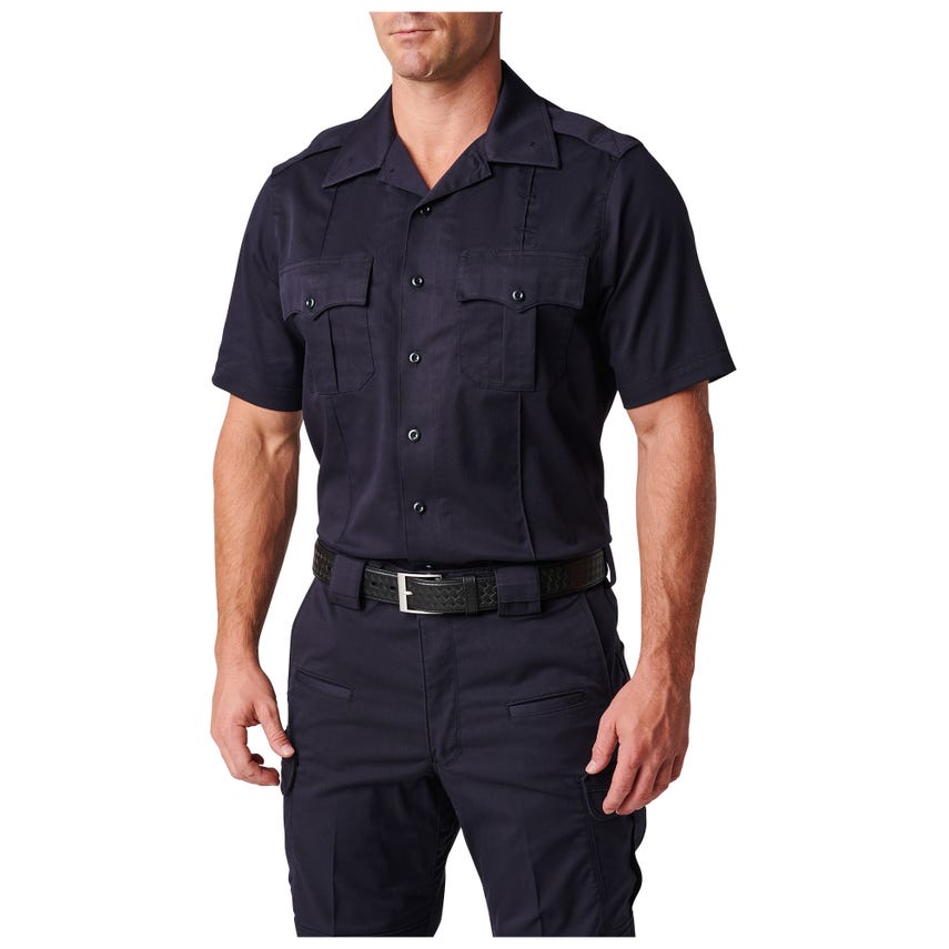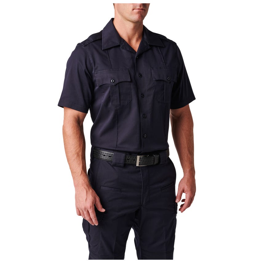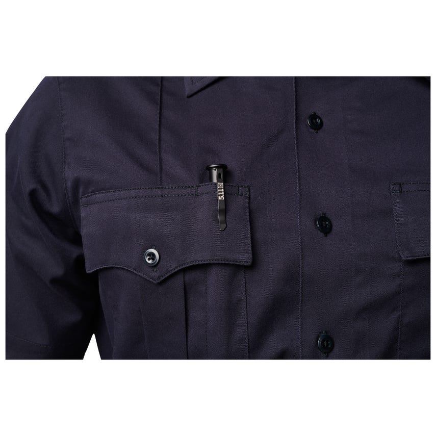The NYPD 5.11 Stryke® Twill Shirt meets the NYPD Spec for uniform shirts and is made with 5.11's Patented Flex-Tac® mechanical stretch twill fabric for performance, durability and easy movement. Sewn-in military creases, epaulettes and scalloped chest pockets with pen guides. Button-front closure with an NYPD Approved label sewn into the front placket. Embroidery eyelets on left chest and each collar. Poly/cotton Flex-Tac® Twill is finished with Teflon™ for stain and soil-resistance.