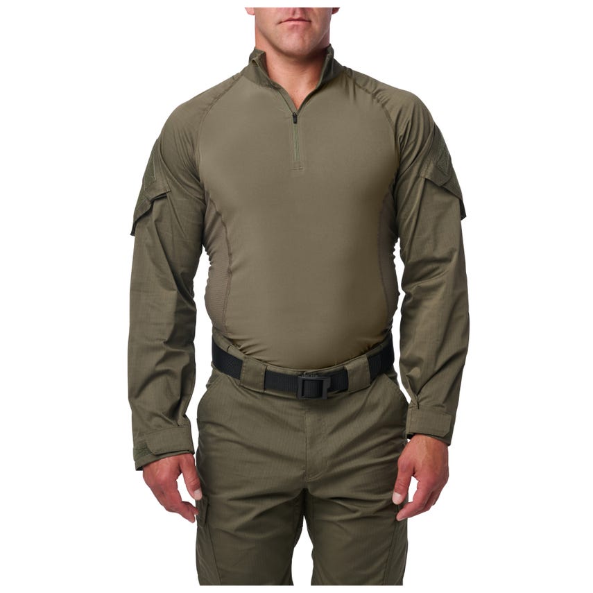 Hit the ground running with our Flex-Tac® TDU® Rapid Long Sleeve Shirt. Designed for law enforcement and tactical professionals, this quarter-zip pullover features mechanical stretch plus reinforced articulated elbows for maximum mobility. Flex-Tac® ripstop fabric in the upper body, sleeves, and collar offers stretch without sacrificing durability. Mesh panels at the sides and under the arms ensure you stay cool when the mission heats up. Soft flat-lock seams help prevent chafing. Low-profile pockets on the shoulders keep critical essentials at hand and secure thanks to hook-and-loop closures. Whatever the challenge, you'll be ready in the Flex-Tac® TDU Rapid Long Sleeve Shirt.