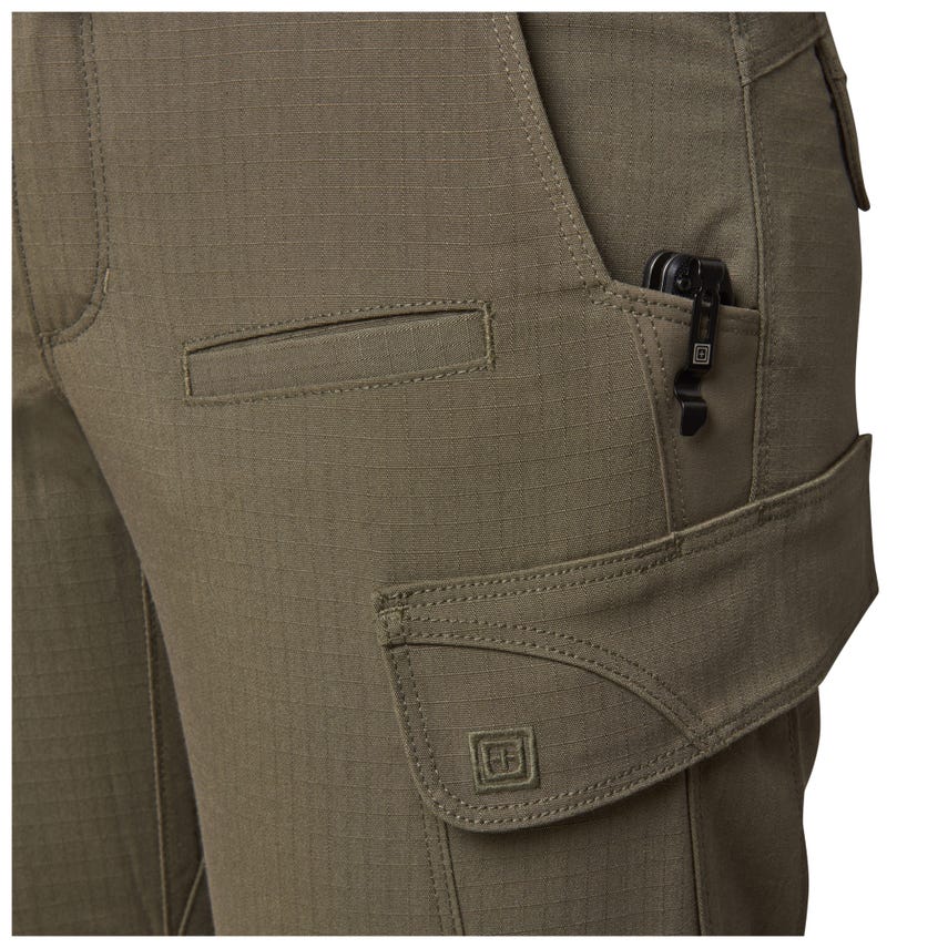- 5.11’s signature angled cargo pockets with its distinctive oblique pleats, exclusive rounded corners, asymmetrical pocket flap and original arc stitching