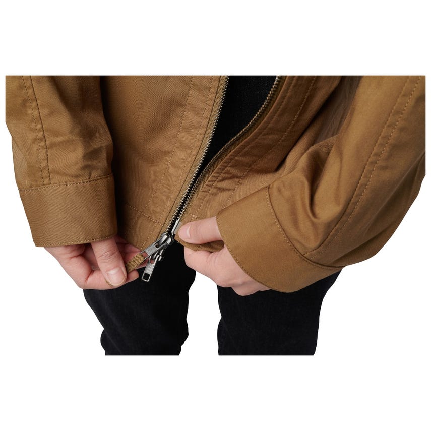 You’ll love this classic field jacket style that’s both functional and versatile. The Tatum Jacket is made from incredibly durable Flex-Tac® canvas. Its mechanical stretch and articulated sleeves give you full range of motion. A Teflon™ finish repels rain, fluids and stains, making this jacket a perfect choice for travel. The Tatum is built to carry. Two chest patch pockets and two exterior hand pockets keep your phone and other accessories secure with flaps closed by concealed snaps. An internal draw-cord at the waist lets you adjust the fit, while a two-way zipper offers quick on and off when you’re on the go.