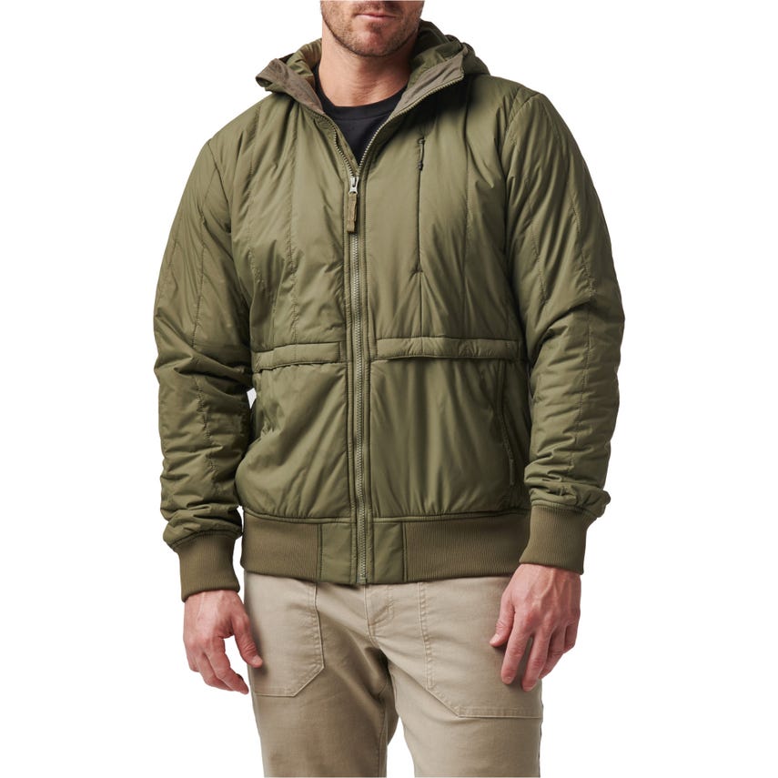 - 5.11[+] TPU label at wearer's left pocket & [+] TPU label at center front hood