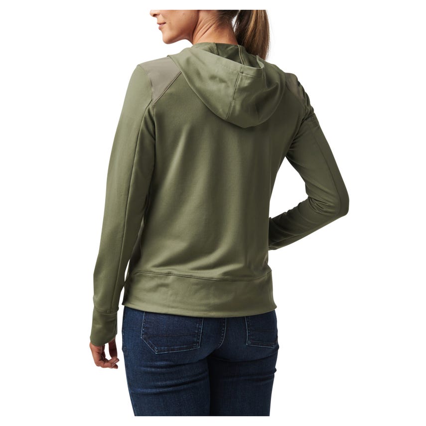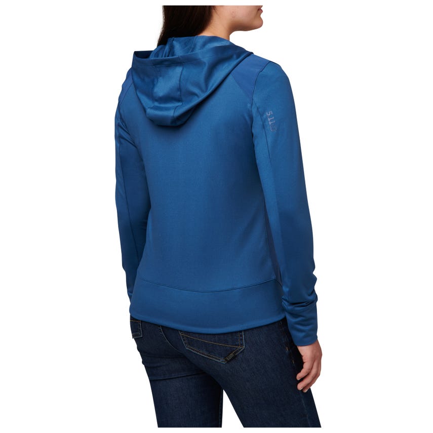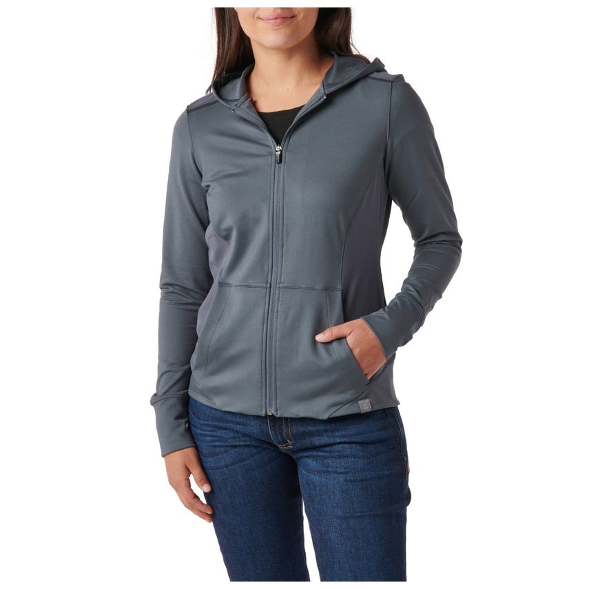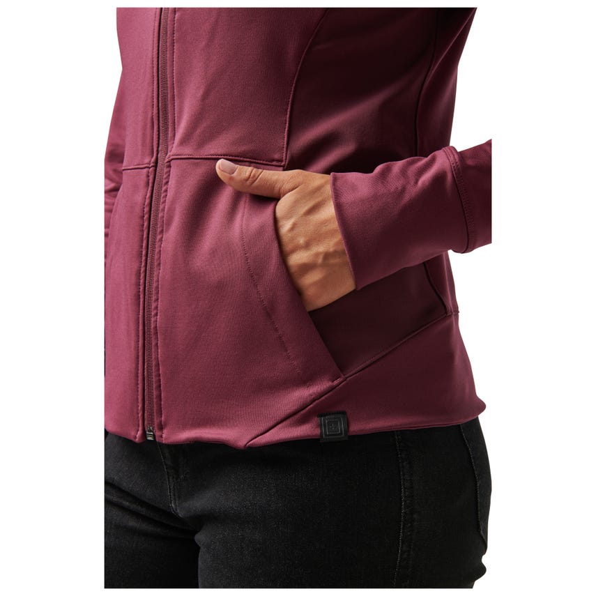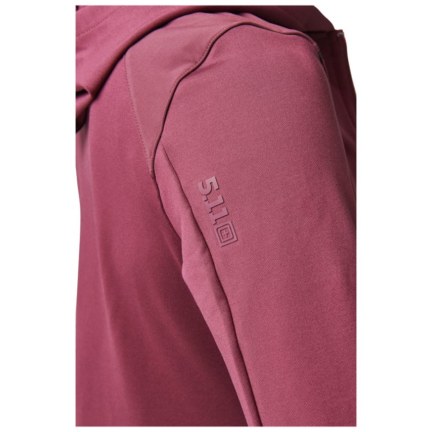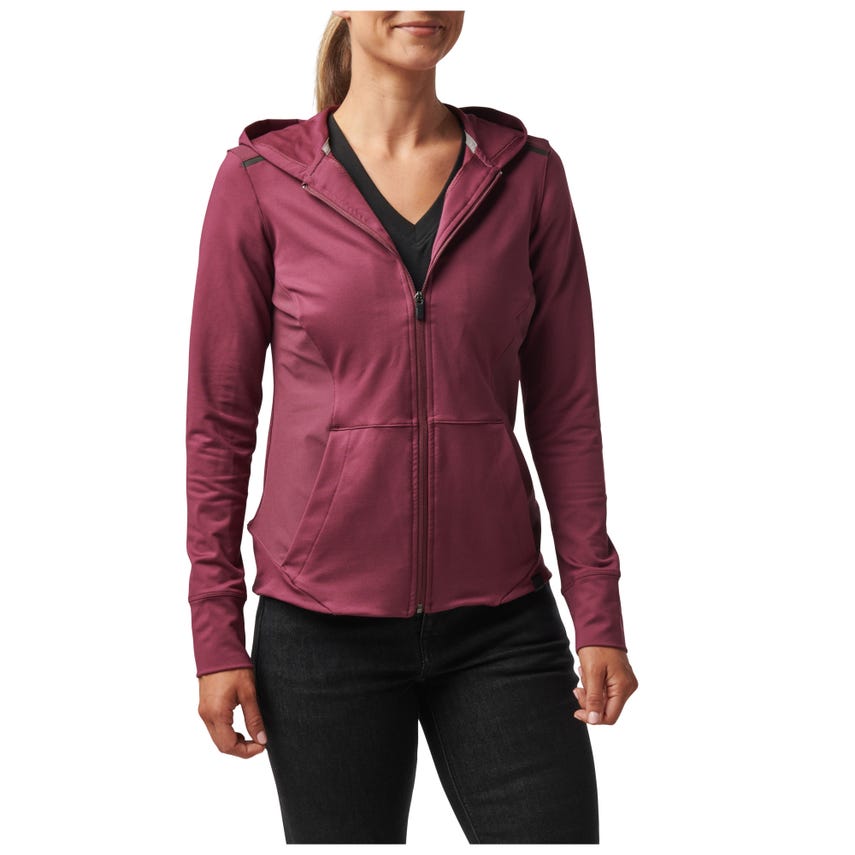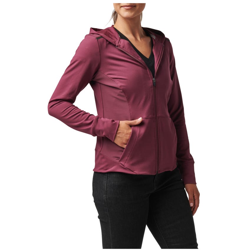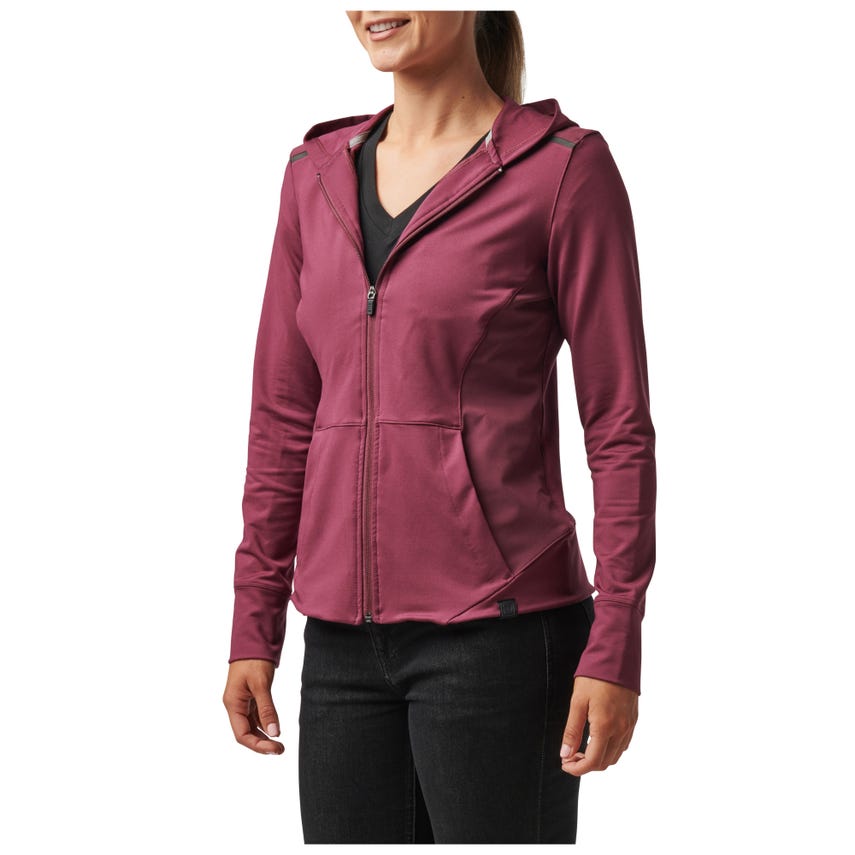 If you like starting your morning with a run or a trip to the gym, you will love our Selma Full Zip. The Selma features a feminine silhouette constructed from a soft yet durable 90-percent polyester and 10-percent elastane terry knit. For extra abrasion resistance, we reinforced the jacket with polyester and elastane stretch panels with Enduro-Flex™. A three-panel contoured hood protects you from the elements, while the split kangaroo pocket keeps your hands warm. Secure your keys, phone and other essentials inside the hidden pockets. If you’re up before the sun, reflective tape on the shoulders will help others spot you. Slip on the Selma Full Zip and don’t look back.