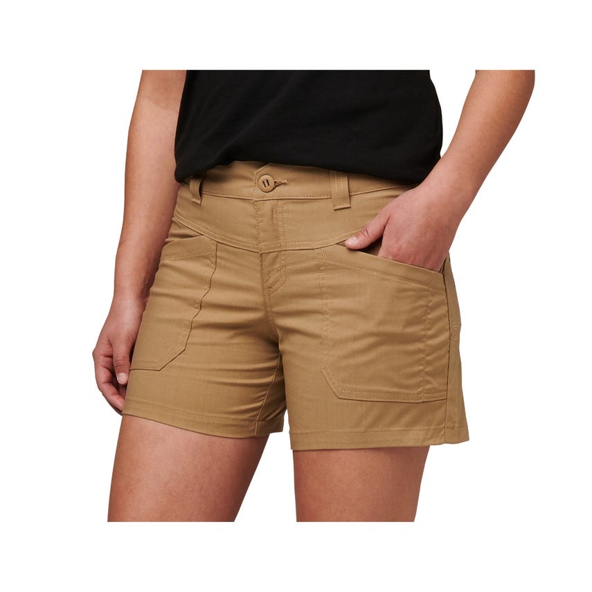 Built tough to keep up with you and your active lifestyle. Constructed from 67% polyester/ 33% cotton Flex-Tac® canvas with a Teflon™ finish for waterproofing to give you a full range of motion without pulling tight. Reinforced belt loops and branded metal rivets at stress points make the Shauna Shorts tough enough to blaze any trail. 6 built-in pockets to keep your gear ready whether out in the wilderness or at the range.