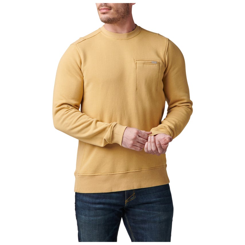 Tackle the day ahead in our Engage Fleece Crew. This upgraded sweatshirt will serve you for years thanks to a durable, yet soft, 60-percent cotton and 40-percent polyester fleece blend. The ribbed cotton-elastane neck, sleeve cuffs and waist help retain body heat and keep the shirt in place while you move throughout the day. A pocket on the left chest adds functional style. Whatever the challenge, meet it head on with the Engage Fleece Crew.