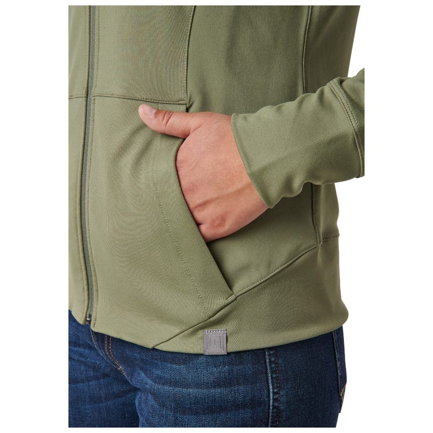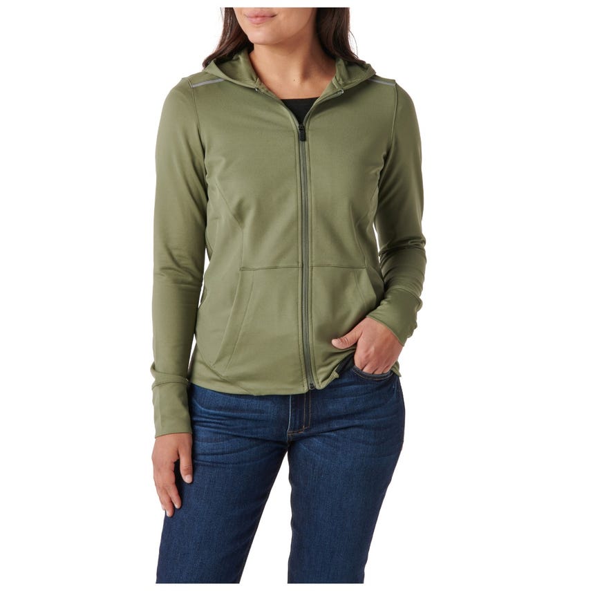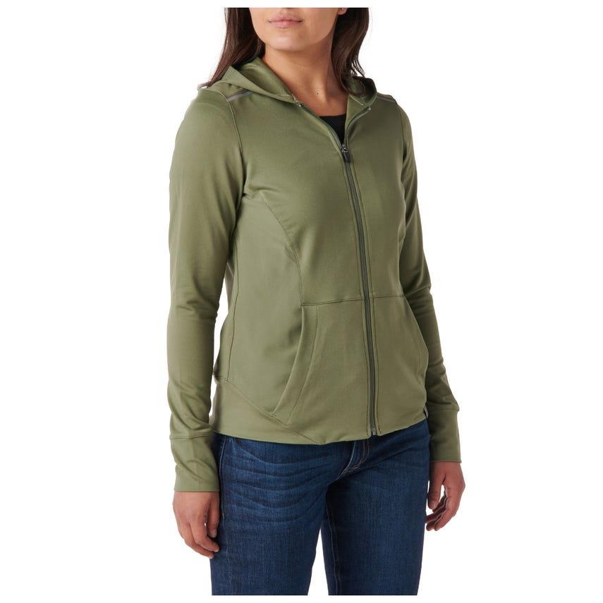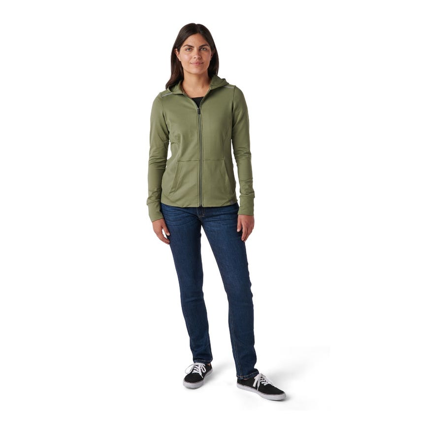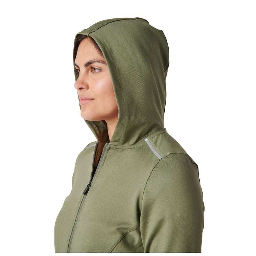 If you like starting your morning with a run or a trip to the gym, you will love our Selma Full Zip. The Selma features a feminine silhouette constructed from a soft yet durable 90-percent polyester and 10-percent elastane terry knit. For extra abrasion resistance, we reinforced the jacket with polyester and elastane stretch panels with Enduro-Flex™. A three-panel contoured hood protects you from the elements, while the split kangaroo pocket keeps your hands warm. Secure your keys, phone and other essentials inside the hidden pockets. If you’re up before the sun, reflective tape on the shoulders will help others spot you. Slip on the Selma Full Zip and don’t look back.