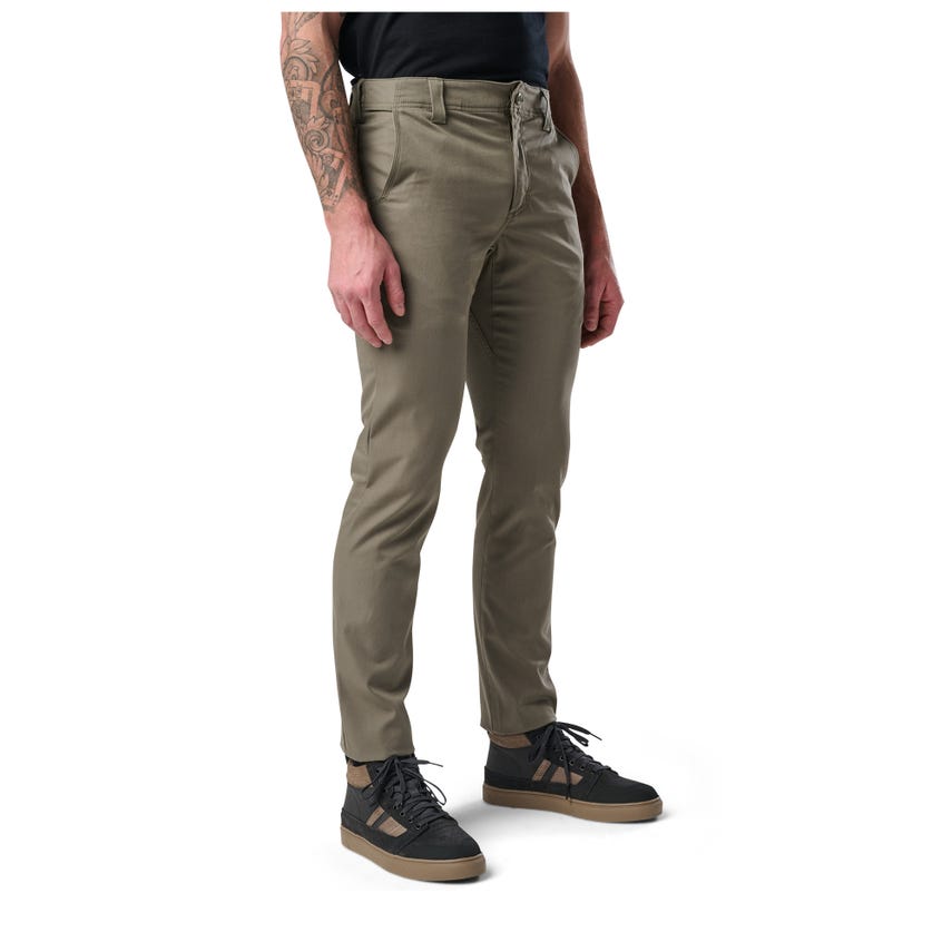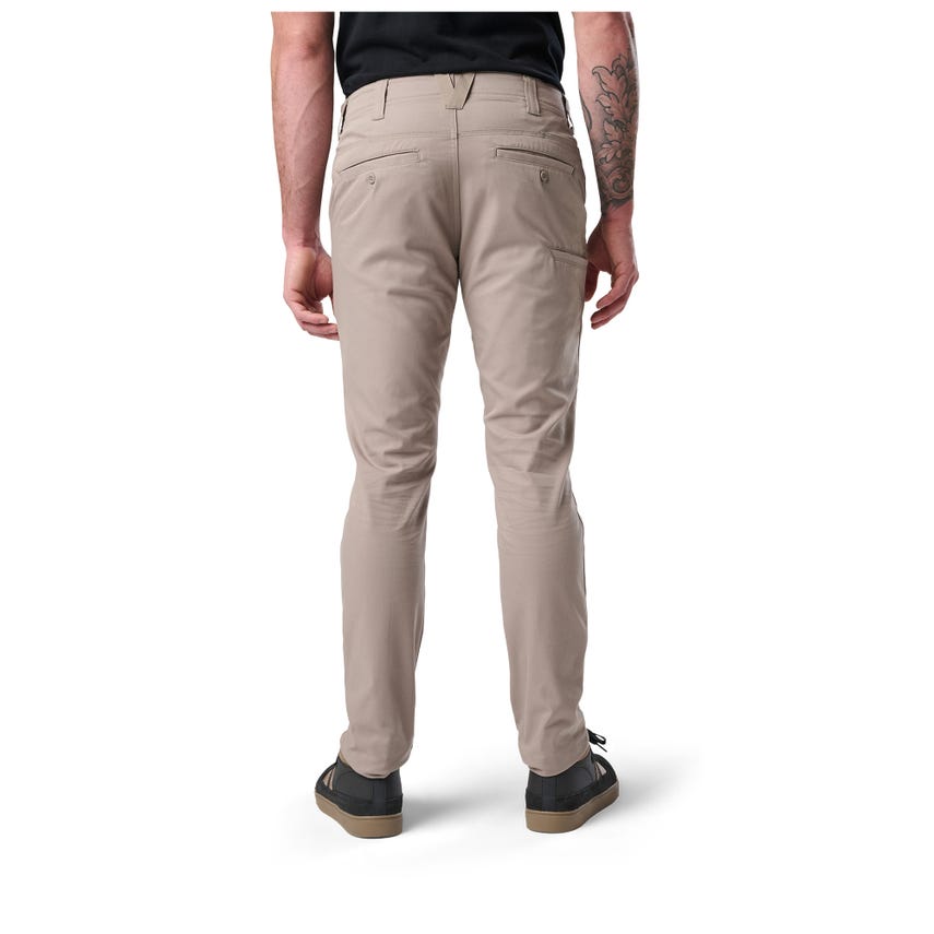 Time to ditch your old chinos. The Edge Chino Slim combines tactical functionality with a modern slim fit. Constructed from 68-percent polyester and 32-percent cotton Flex-Tac® twill with a DWR finish for stain-busting performance, this pant is ready for more than a day at the office. An inseam gusset prevents binding when you're on the move. Reinforced belt loops and "V" webbing at the center back loop enhance the rugged build. Seven pockets, including utility drop pockets in the back and on the right thigh, maximize your carrying options. Button closures on the rear welt pockets prevent valuables from spilling out. Try the Edge Chino Slim and you'll never again settle for another plain pair of chinos.