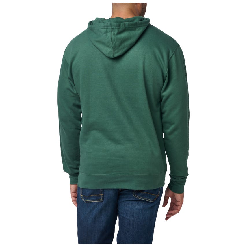 Embrace the art of blending in while standing out with the 5.11® Punctarn Hoodie. This cozy companion boasts a camo-style logo, perfect for days when you're feeling tactical but casual. Made from a plush cotton/poly blend, it features a jersey-lined hood and a classic kangaroo pocket?ideal for stashing both secrets and snacks. Enjoy the balance of comfort and bold style with every wear.
