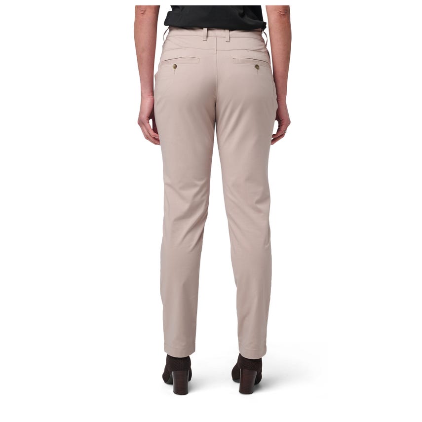 Tactical meets modern style in the Alexa Stretch Chino Slim. This women’s chino blends tactical function with a curve-hugging modern slim fit and mid-rise. Constructed from a 67-percent polyester and 33-percent cotton canvas Flex-Tac®, the Alexa transitions easily from work to after hours. Mechanical stretch enhances flexibility, while the Teflon™ finish protects from those inevitable spills and unwanted stains. Reinforced belt loops, with Everyday Ready-carry friendly placement, accommodate up to a 1.5-inch belt. Five-pocket styling includes additional pockets—utility pockets on the back and a hidden key pocket inside the front left leg cuff. Button closures on the rear welt pockets keep essentials secure. Slip into the Alexa Stretch Chino Slim and you’ll see—and feel—the difference.