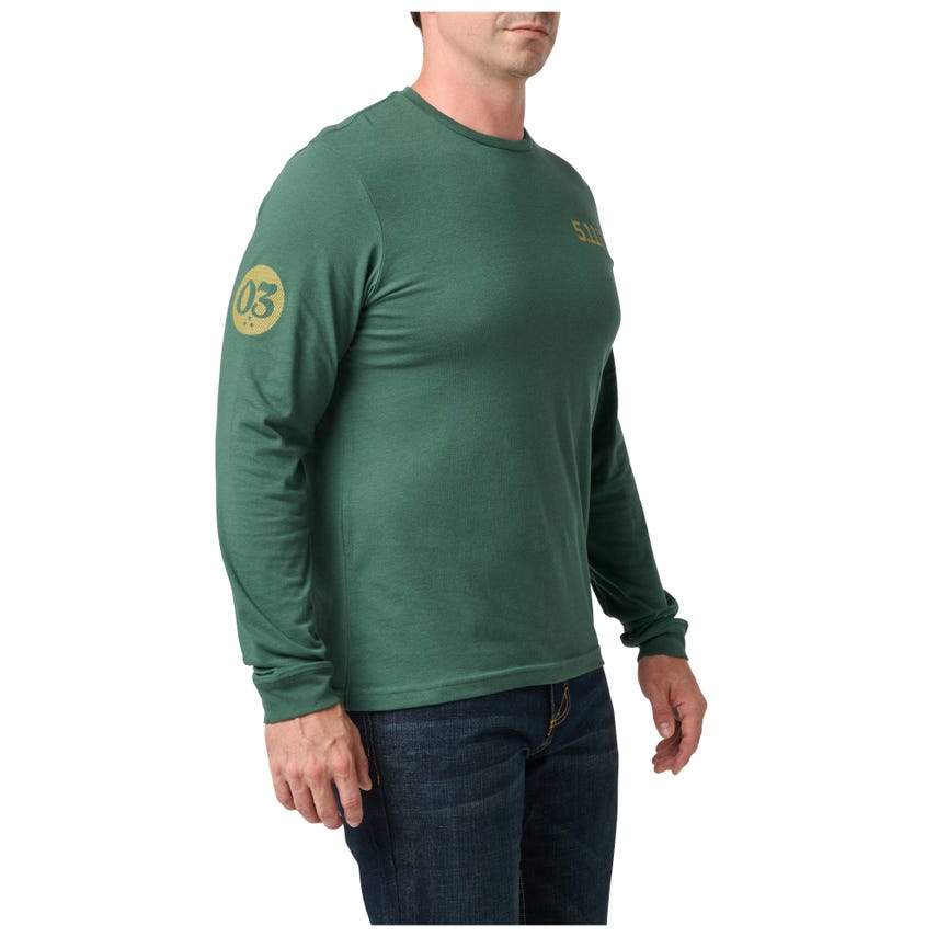 Stay ready like the legends on this shirt. The Mr. Clean Long Sleeve Tee by 5.11 Tactical combines casual style with a nod to timeless resilience. Featuring a bold "Five Eleven" graphic and the motto "Always Be Ready," this tee is crafted from a comfy ringspun cotton/poly blend with fade-resistant inks. It's your go-to for maintaining both comfort and readiness.