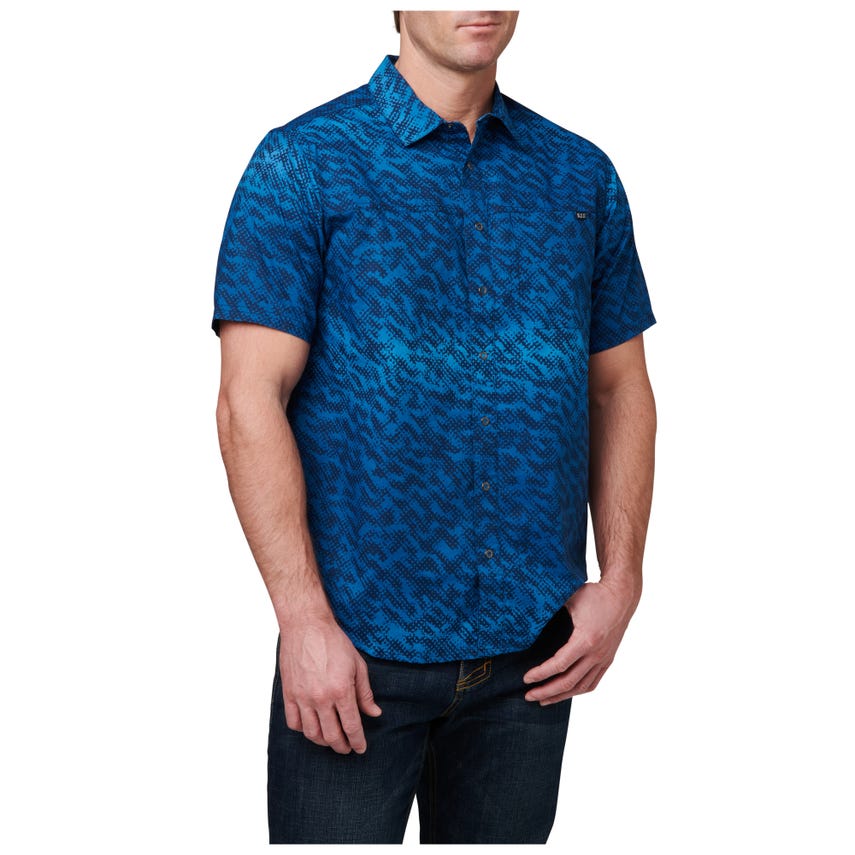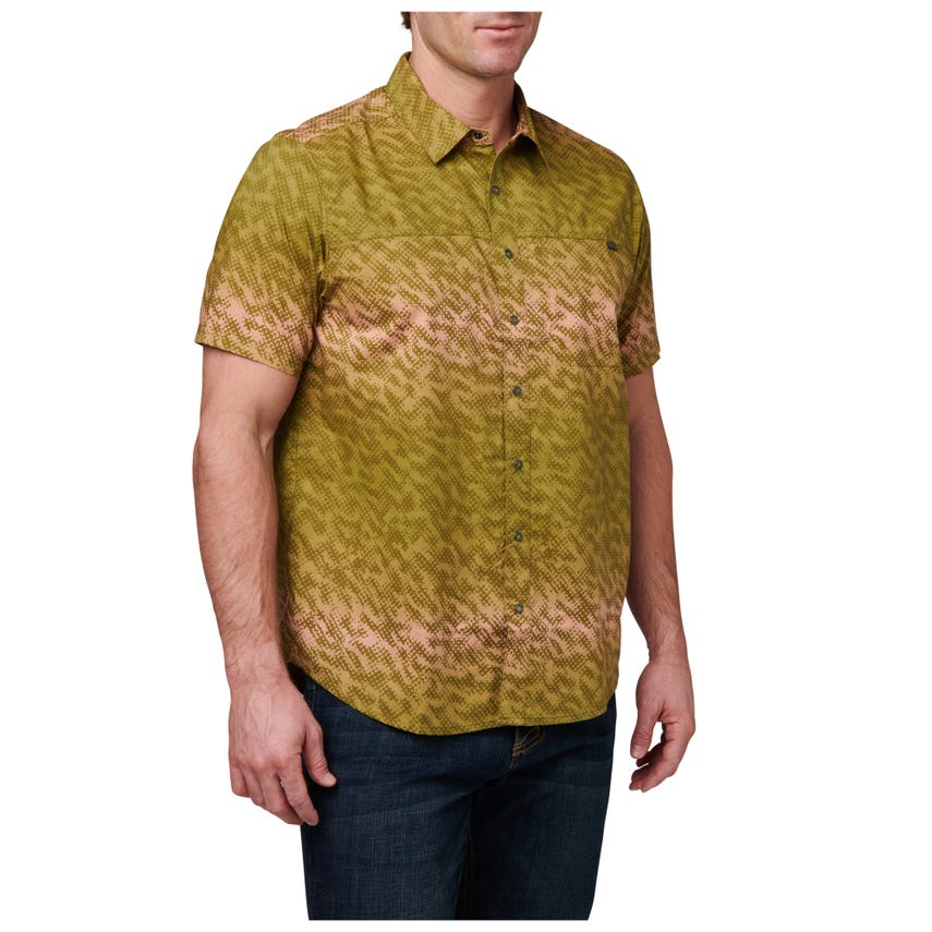 Whether you're wetting a hook or telling fish tales over a cold one, the Wyatt Short Sleeve Print is the perfect shirt. This fishermen's favorite is constructed from a comfortable 60-percent cotton and 40-percent polyester poplin with a rinsed wash in trout camo. The two-piece collar backed with a collar stand holds its shape after repeated wash and wear. A RAPIDraw™ placket with logo metal snaps offers fast access to your EDC gear. This casual shirt features a left chest pocket, shirttail hem and double-layer back yoke. Hit the river or the local watering hole in style with the Wyatt Short Sleeve Print.
