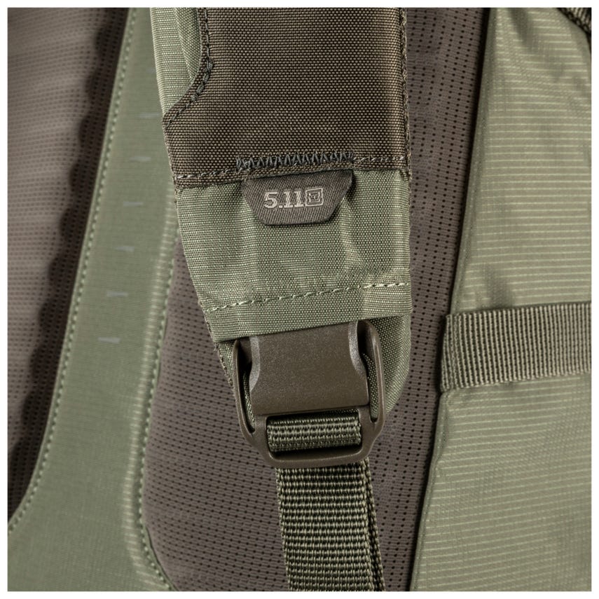 - Padded shoulder harness with adjustable sternum strap and laser-cut MOLLE platform