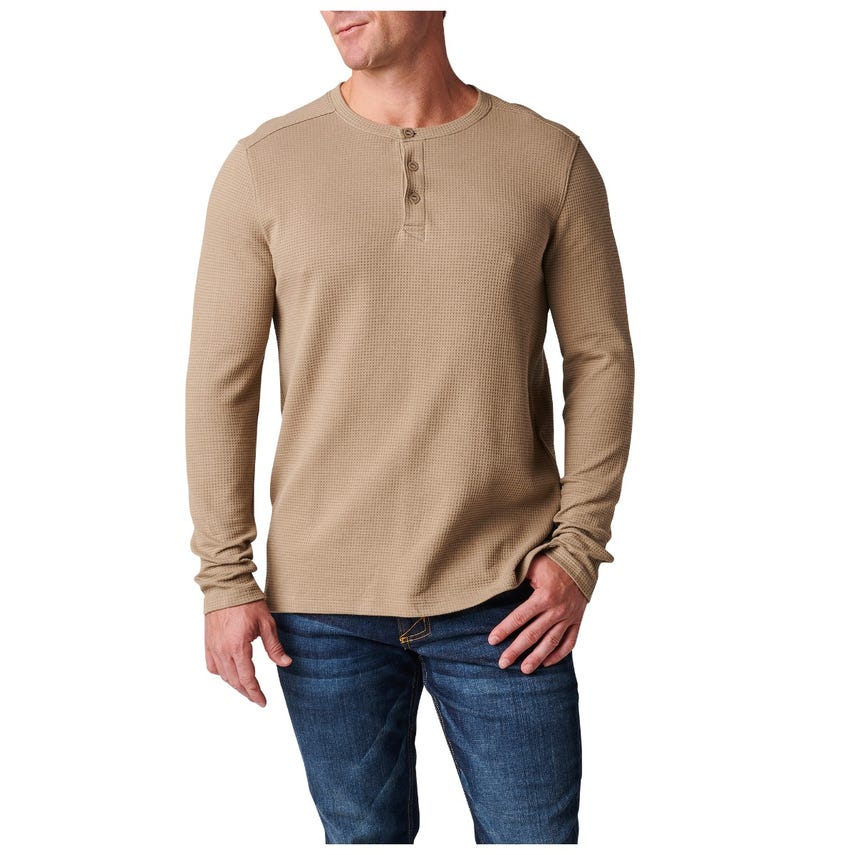 Keep the chill at bay with our rugged Jasper Thermal Long Sleeve Shirt. We combined classic henley styling with 5.11 durability, making the Jasper a solid option for travel, training, and the day-to-day. The warm thermal knit is crafted from a soft cotton and polyester blend for lasting comfort. A three-button placket and side seam vents help you manage the temperature. The Jasper Thermal makes a highly functional addition to your bug-out bag, so you’ll want to order one for daily wear and an extra one—for just in case.