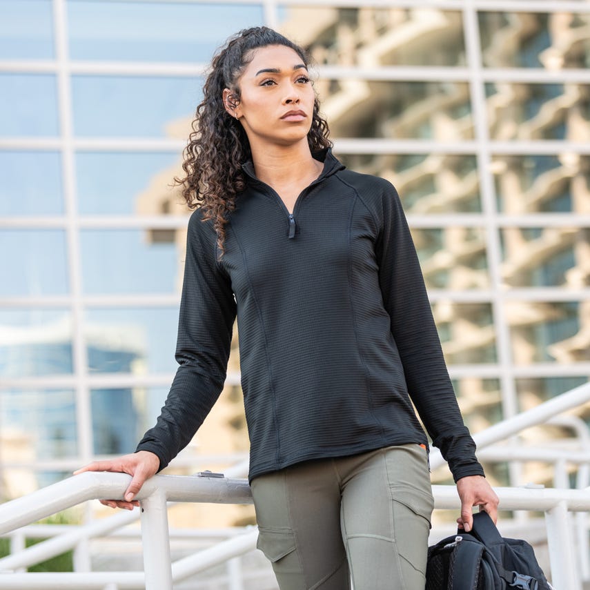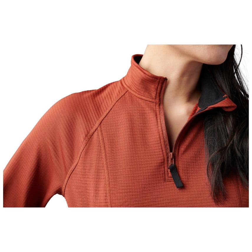 The Women’s Stratos 1/4 Zip is designed to be a mid-layer for cold temperatures—but with looks this good, you’ll want to wear it on its own. Constructed from a durable polyester and elastane blend fleece, the Stratos provides functional stretch that can keep pace with your active lifestyle. The material wicks moisture away from your skin, making this top ideal for hiking, training and other outdoor activities. A brushed tricot-lined collar, zip-front closure with chin guard and raglan sleeves provide all-day comfort. Finally, we added princess seams for a feminine silhouette that will make the Women’s Stratos ¼ Zip one of your favorite tops.