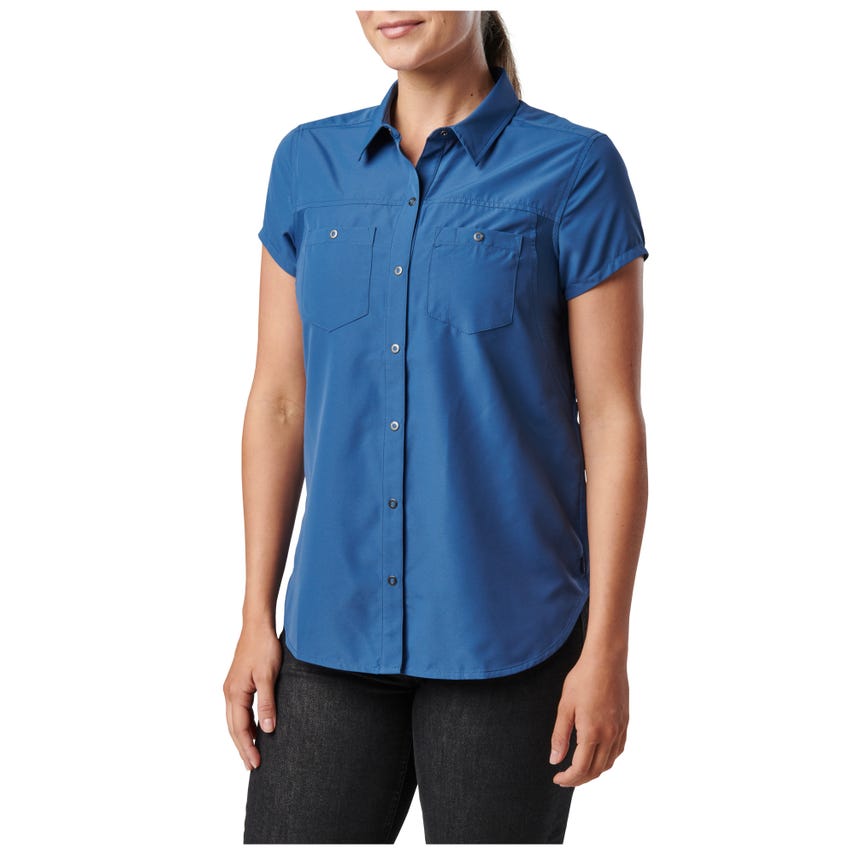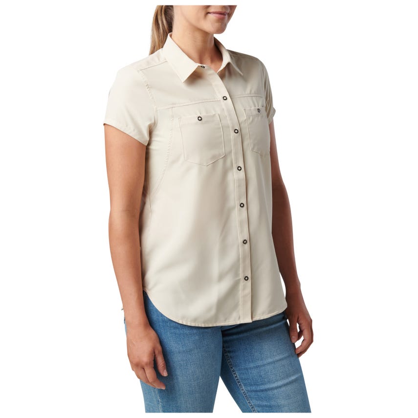 Hit the mark and look good doing it with the Women's Marksman Short Sleeve Shirt. Our 100-percent polyester, plain-weave top provides enviable comfort when things heat up at work or on the firing line. Moisture-wicking fabric keeps things cool and tricot mesh underarm gussets ensure ample ventilation. When you're outdoors, the UPF50+ rating has you covered. A collar stand keeps the two-piece collar in place throughout the day. The RAPIDraw™ snap placket offers quick access to your EDC, while the dual chest patch pockets increases carrying capacity. Add the classic shirt tail hem and it's little wonder the Women's Marksman Short Sleeve Shirt doesn't spend much time in the closet.
