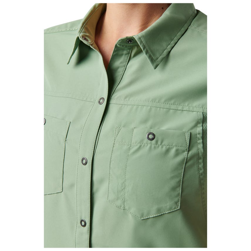 Hit the mark and look good doing it with the Women's Marksman Short Sleeve Shirt. Our 100-percent polyester, plain-weave top provides enviable comfort when things heat up at work or on the firing line. Moisture-wicking fabric keeps things cool and tricot mesh underarm gussets ensure ample ventilation. When you're outdoors, the UPF50+ rating has you covered. A collar stand keeps the two-piece collar in place throughout the day. The RAPIDraw™ snap placket offers quick access to your EDC, while the dual chest patch pockets increases carrying capacity. Add the classic shirt tail hem and it's little wonder the Women's Marksman Short Sleeve Shirt doesn't spend much time in the closet.