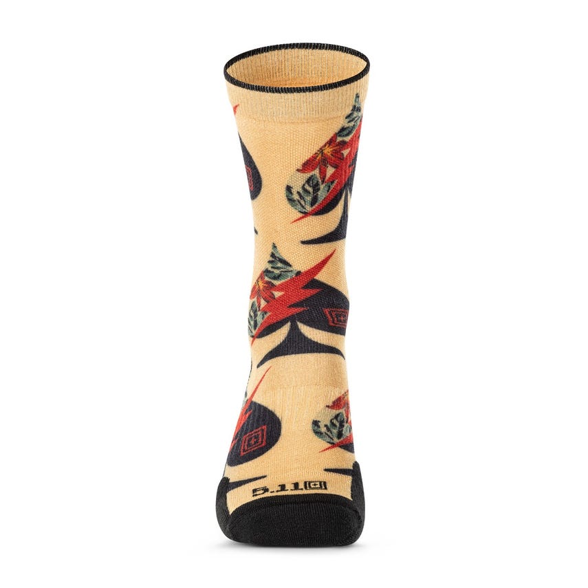 Channeling the energy of a tropical storm, the Sock & Awe Tropic Thunder socks are your undercover allies in comfort. Featuring a dynamic graphic of lightning bolts and tropical motifs, these socks weave boldness into every step you take. Slip them on and let the vibrant design fuel your daily adventures with a blend of flair and function, perfectly aligning with 5.11 Tactical's innovation.