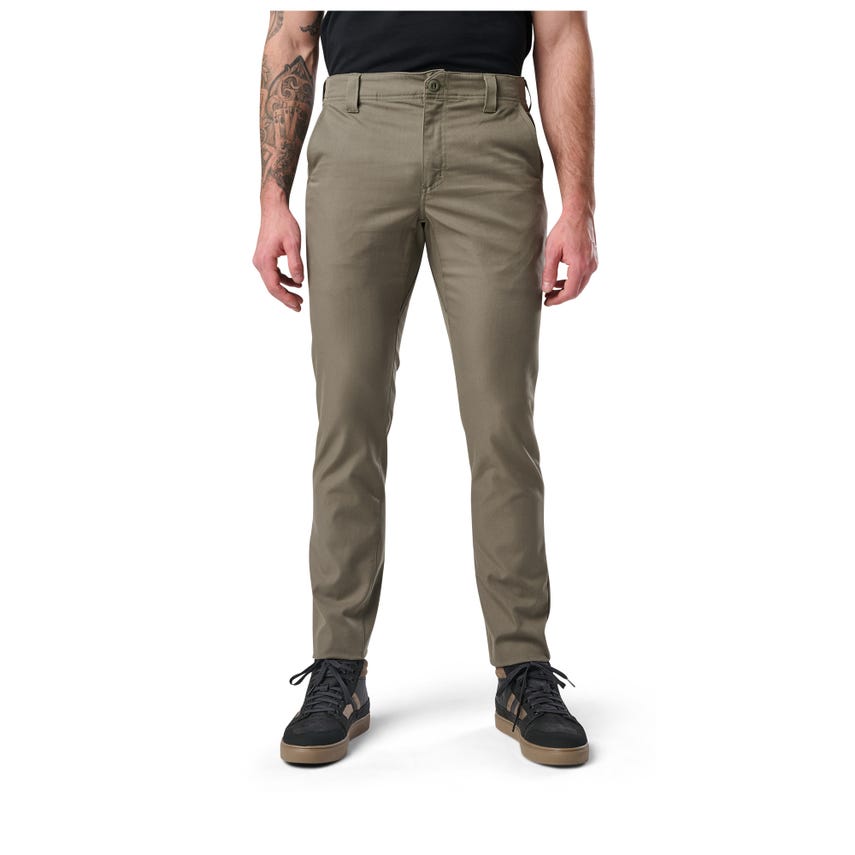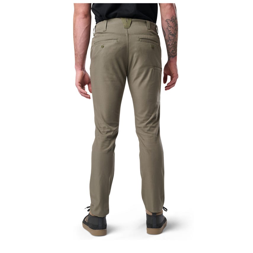 Time to ditch your old chinos. The Edge Chino Slim combines tactical functionality with a modern slim fit. Constructed from 68-percent polyester and 32-percent cotton Flex-Tac® twill with a DWR finish for stain-busting performance, this pant is ready for more than a day at the office. An inseam gusset prevents binding when you're on the move. Reinforced belt loops and "V" webbing at the center back loop enhance the rugged build. Seven pockets, including utility drop pockets in the back and on the right thigh, maximize your carrying options. Button closures on the rear welt pockets prevent valuables from spilling out. Try the Edge Chino Slim and you'll never again settle for another plain pair of chinos.