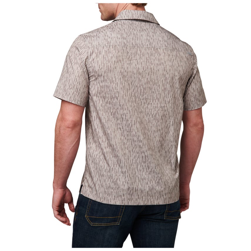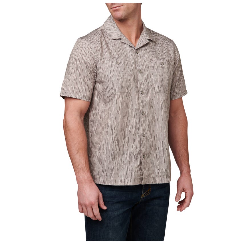 Classic camp style meets cutting-edge performance in our Rain-Tarn Short Sleeve Shirt. A pressed open collar keeps things looking fresh, while the 100-percent polyester dissolving yarn print, with Vent-Tac™ properties and wicking finish, helps you maintain your cool. Just in case the firewood needs chopping, side seam vents provide ample circulation. Button enclosures secure the chest patch pockets and a center front RAPIDraw™ placket with faux button snaps offers fast access to EDC gear. The raintarn camouflage pattern looks natural in any environment. Be ready for everything with the Rain-Tarn Short Sleeve Shirt.