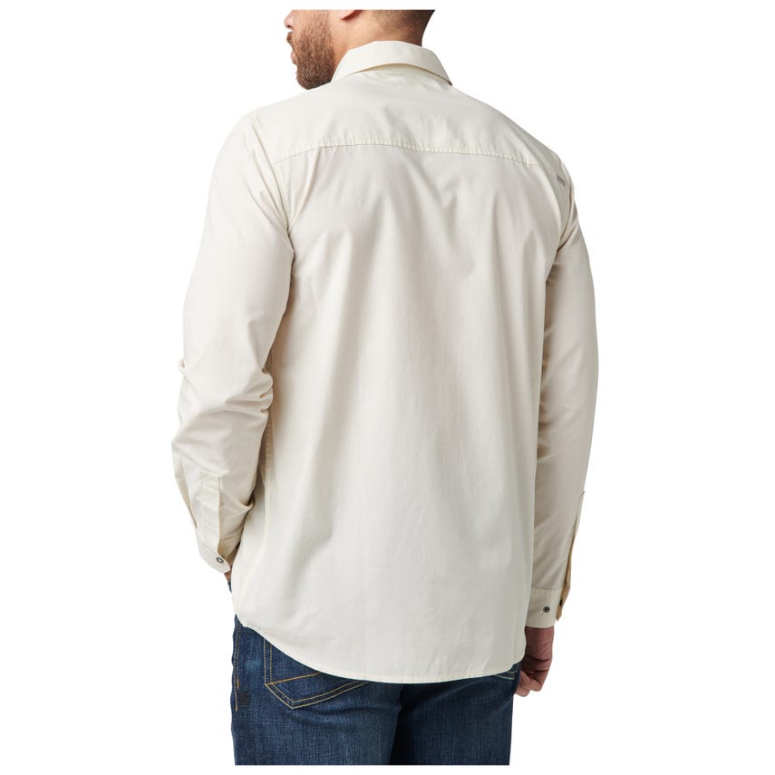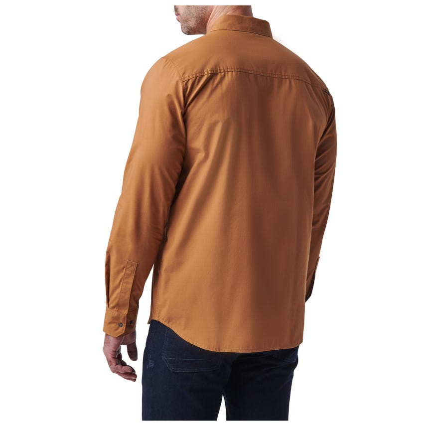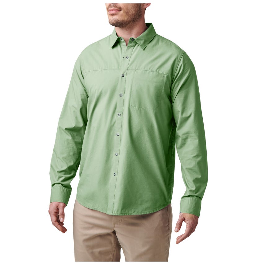 The Igor Solid Long Sleeve Shirt sports a contemporary look that works just as hard after hours as it does on the job. Constructed from 60% cotton and 40% polyester poplin, the Igor provides long-lasting comfort and wear. Beneath that exterior beats the 5.11 functionality you’ve come to expect. Our center-front RAPIDraw™ snap placket enables fast access to EDC gear, phone, wallet or passport. A fold-down collar, shirt-tail hem and button-adjustable cuffs keep everything on point. The on-seam pocket on the left chest provides traditional storage for items that don’t require added security.