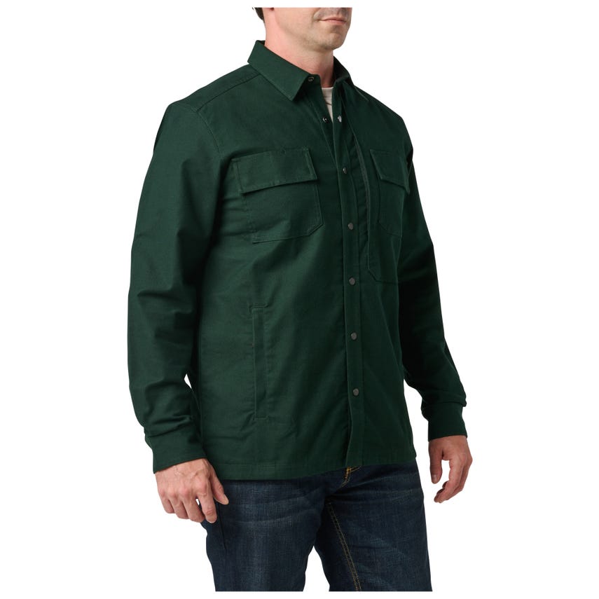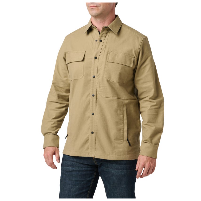 Pulling double duty is the Randolph Shirt Jacket’s specialty. The cotton-elastane twill construction and professional style look sharp in any situation, while remaining truly tactical. Urban-friendly functionality begins with our RAPIDraw™ snap placket that keeps your everyday essentials hidden within reach. Left and right chest pockets with flaps, concealed closures and pen guides provide additional carry options. A pair of hand pockets and sleeve cuffs with adjustable snap closures maintain warmth, while side seam vents ensure all-day comfort. Add internal dump pockets and our Randolph Shirt Jacket provides seven places to store essential EDC, office or vacation items. You’ll be ready for whatever comes your way.