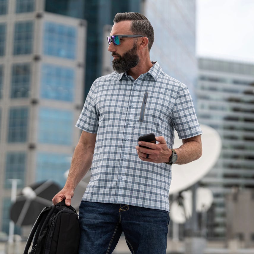Exude confidence and hard work with the plaid two-piece collar design that's built to be as tough as you. The Marksman Utility Plaid Shirt has a 50+ UPF rating, moisture wicking fabric, and a double layer back yoke to give the right fit with added strength. Side seam vents add comfort and mobility. A left chest zipper pocket has a cord dipped puller and side entry to keep the important things close and easy to reach. Imported.