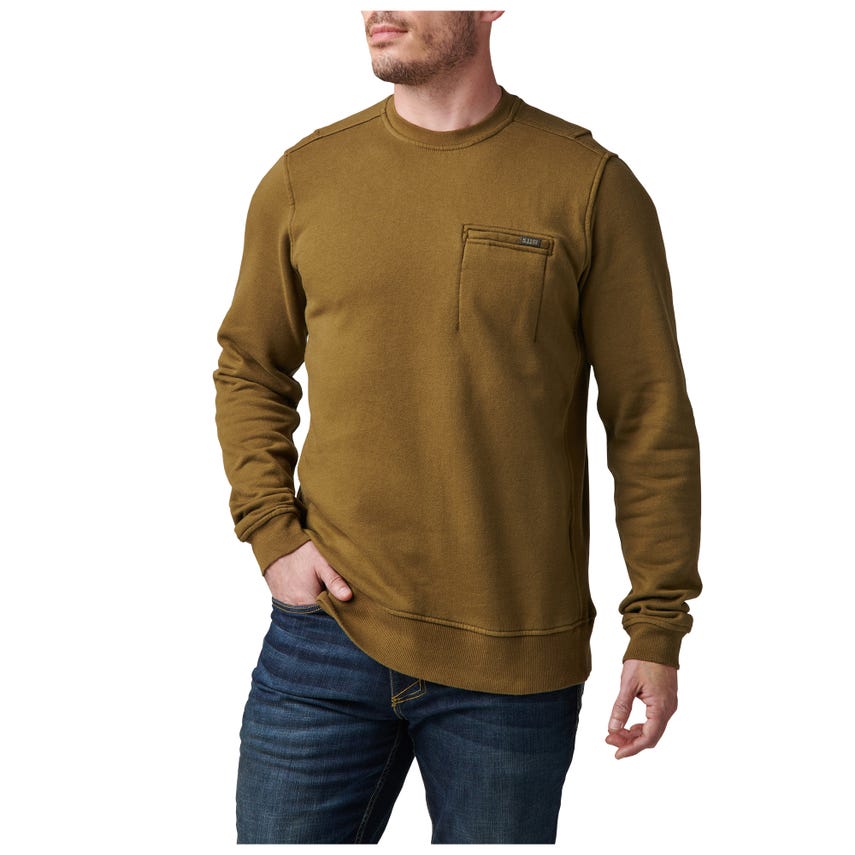 Tackle the day ahead in our Engage Fleece Crew. This upgraded sweatshirt will serve you for years thanks to a durable, yet soft, 60-percent cotton and 40-percent polyester fleece blend. The ribbed cotton-elastane neck, sleeve cuffs and waist help retain body heat and keep the shirt in place while you move throughout the day. A pocket on the left chest adds functional style. Whatever the challenge, meet it head on with the Engage Fleece Crew.