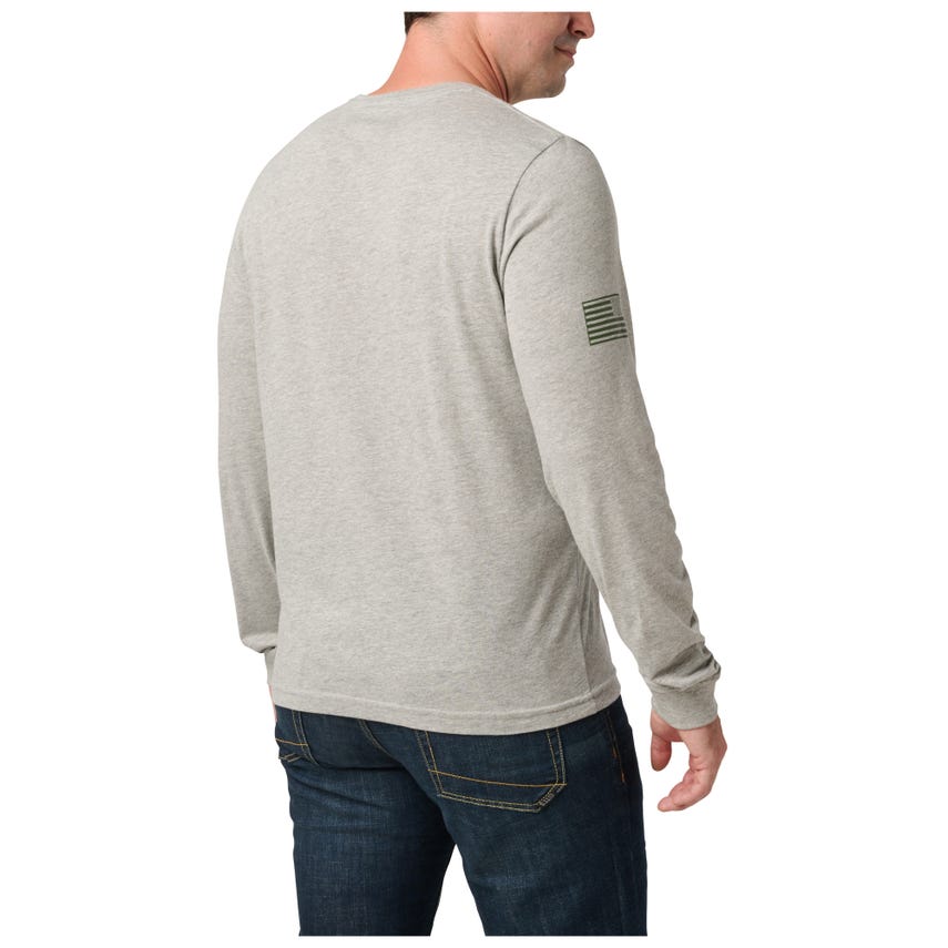 Blend in while standing out. This Woodland Camo Fill Long Sleeve Tee combines urban flair with a nod to classic camouflage. The graphic features the iconic 5.11 logo in a camo pattern, subtly merging style with tactical inspiration. Made from a soft cotton/polyester blend, it offers moisture-wicking comfort and durability, with fade-resistant inks ensuring the design stays sharp wash after wash. Perfect for your next urban jungle adventure.