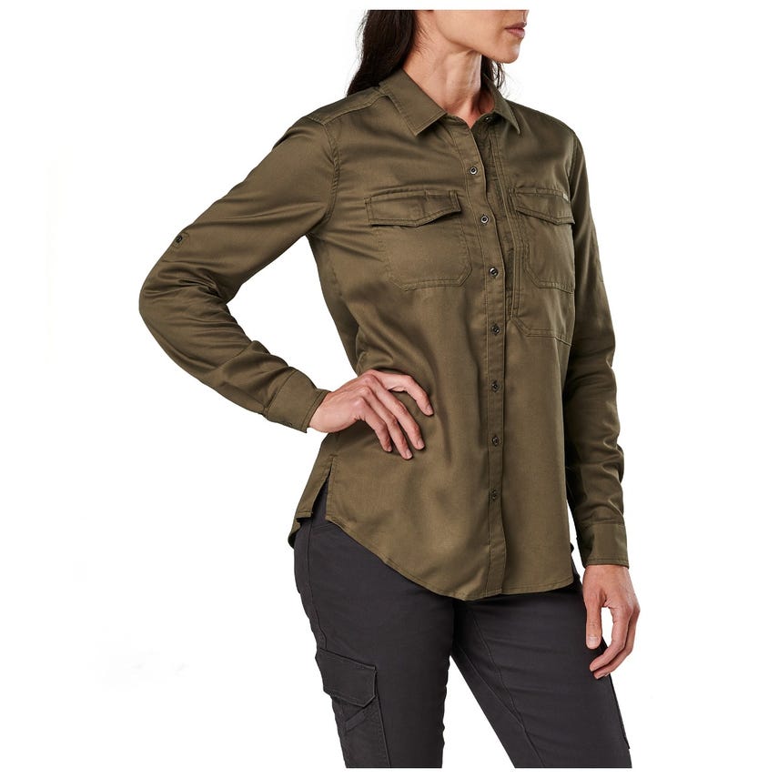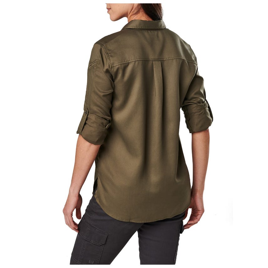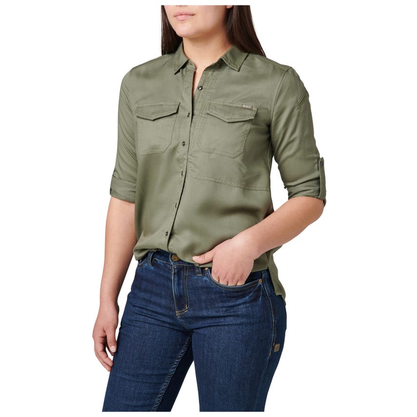 Military inspired, the Nikita is designed to help you stay in your comfort zone with an enzyme washed Tencel® fabric for easy wear. But make no mistake, this shirt is ready for EDC duty, featuring 5.11'rs Ready Pocket™ at the left chest and patented pen pockets on the left sleeve. And when the situation requires you to roll up your sleeves, whether you're at the range or in a conference room, the button and fabric attachment keep them up and out of your way.