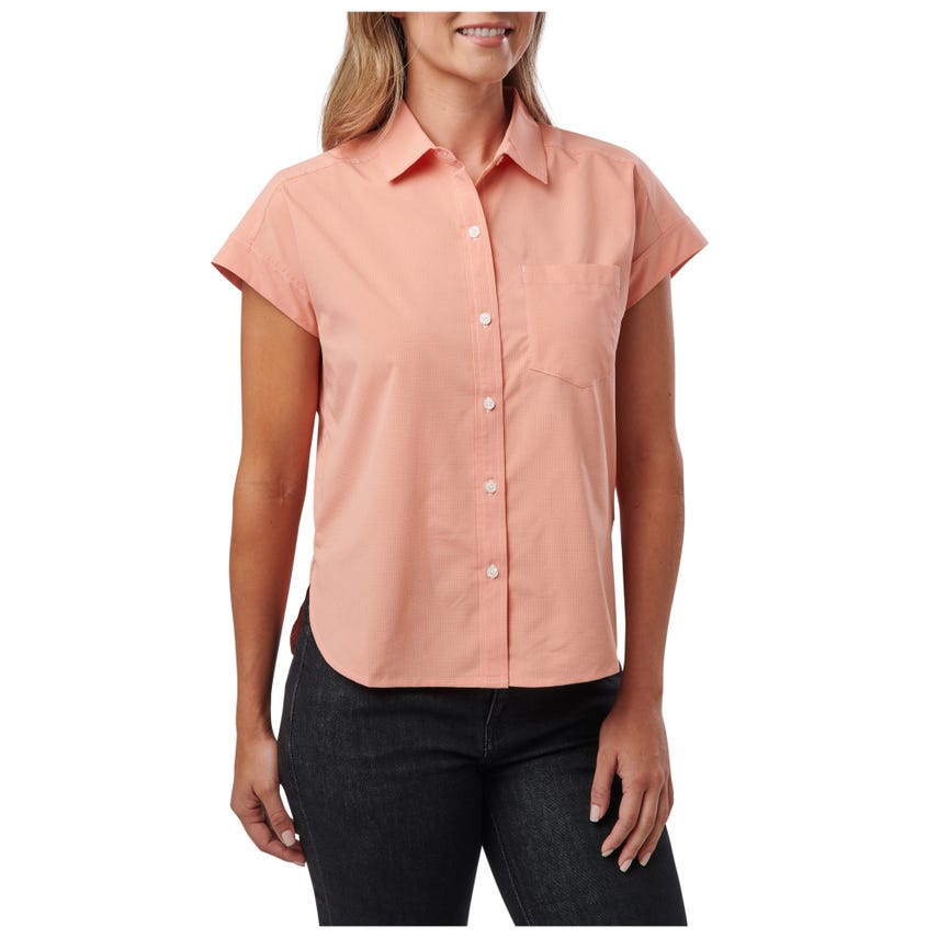 Meet your new favorite short sleeve shirt. The Skye Short Sleeve Shirt combines stylish looks with functional performance. A 65-percent, 35-percent nylon dissolving yarn with Vent-Tac™ properties ensures plenty of circulation for those hot-weather outings, while the wicking finish keeps moisture away. The two-piece collar backed with a collar stand holds its shape after repeated wash and wear. A center front-button placket and left chest pocket hold your accessories, while the Dolman sleeves and folded sleeve hems never go out of style. The Skye Short Sleeve Shirt quickly becomes a secret weapon when the mercury soars.