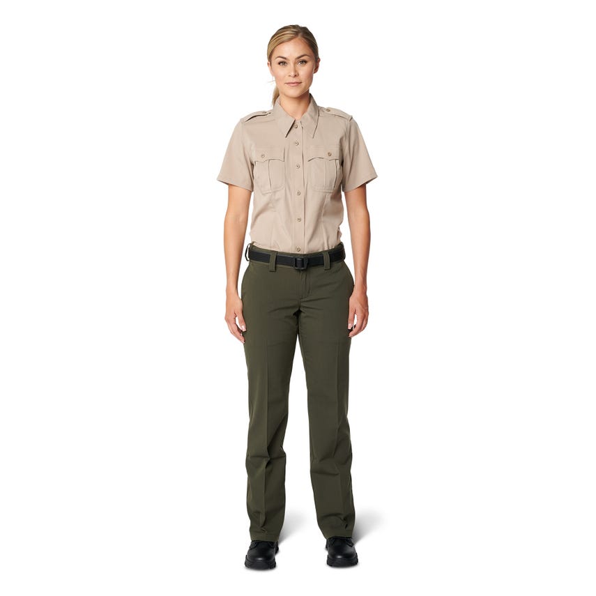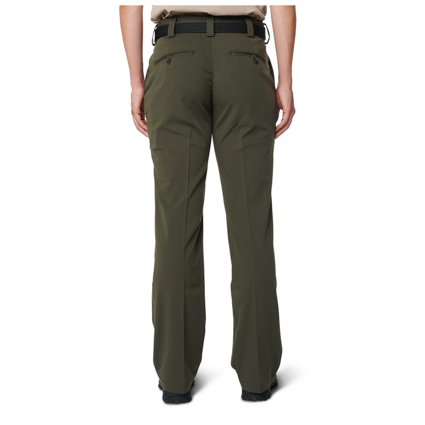 Made with our mechanical stretch Flex-Tac® 60% polyester / 40% merino wool twill fabric (7.79-oz.) and finished with Teflon® for stain and soil resistance. Men's and women's pants feature a clean traditional Class A silhouette with permanent creases, two hip pockets, double welted rear pockets and a hidden utility pocket at the right front waistband. The pants are made with our tunnel waistband and gripper elastic to help keep your uniform shirt tucked in for a neat, clean and professional appearance.