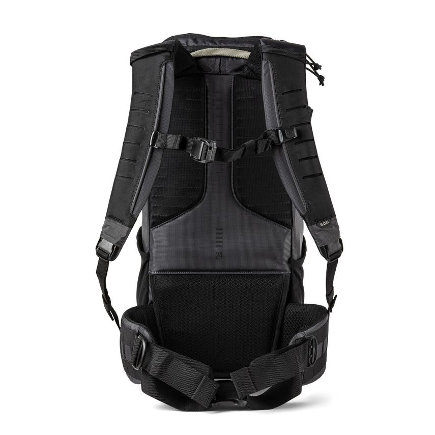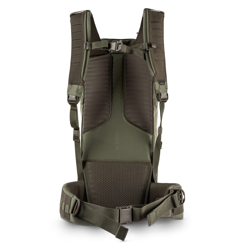 - Padded shoulder harness with adjustable sternum strap and laser-cut MOLLE platform