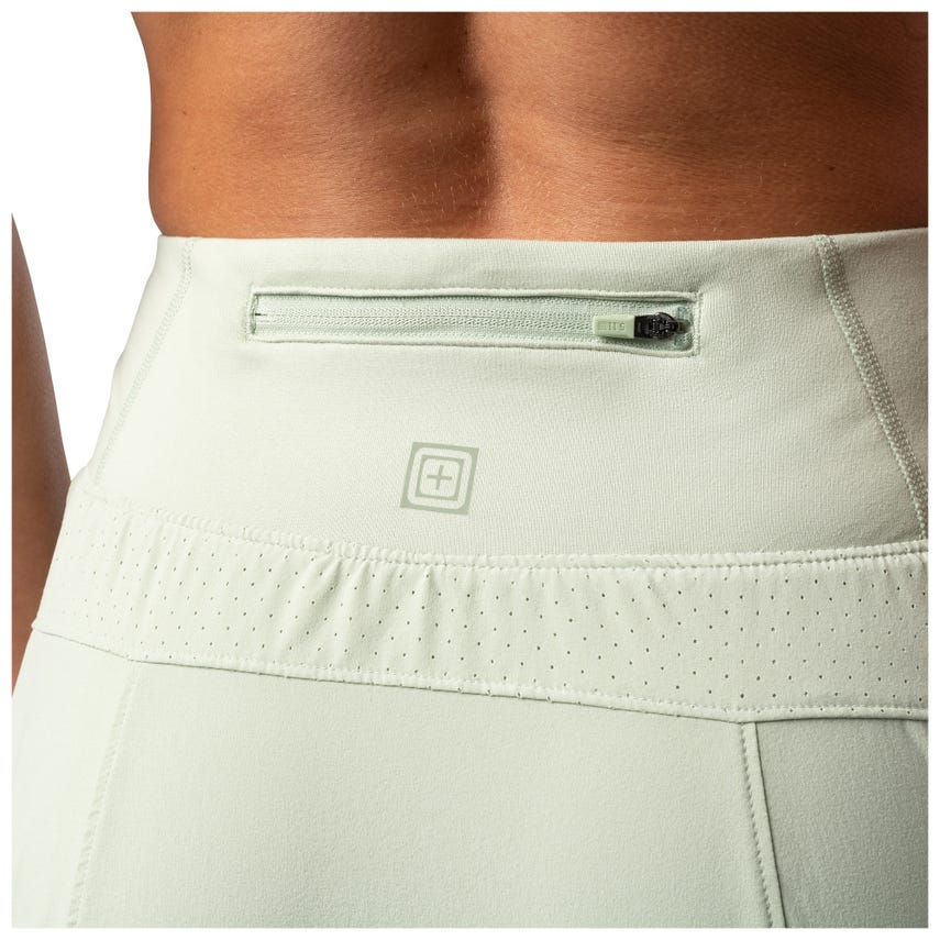 - Low profile center back waistband zipper pocket