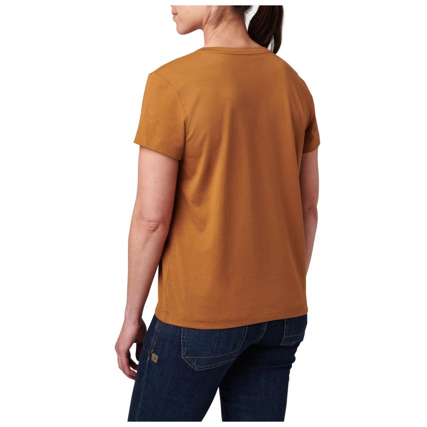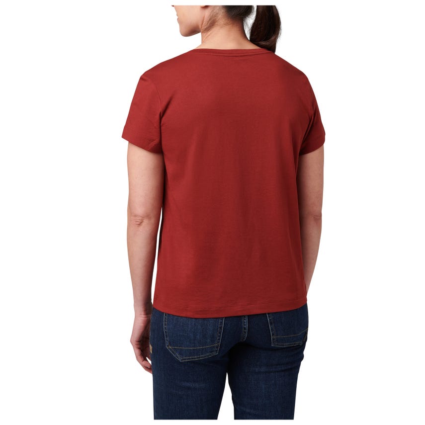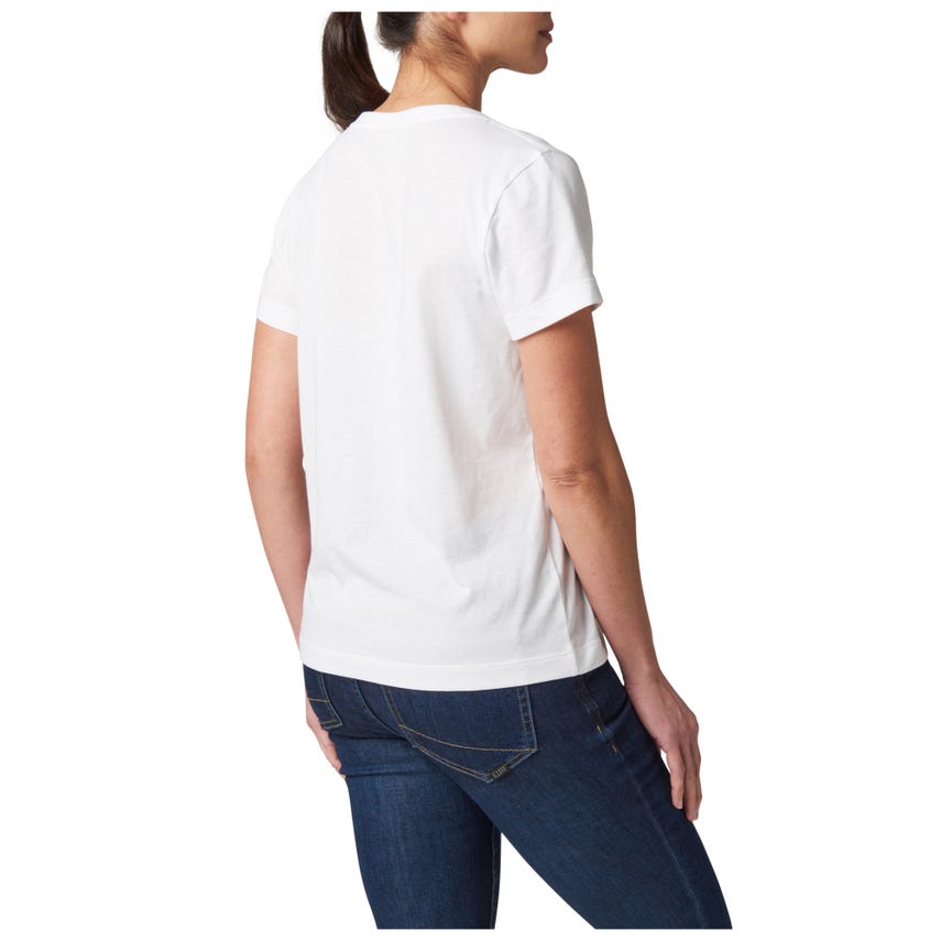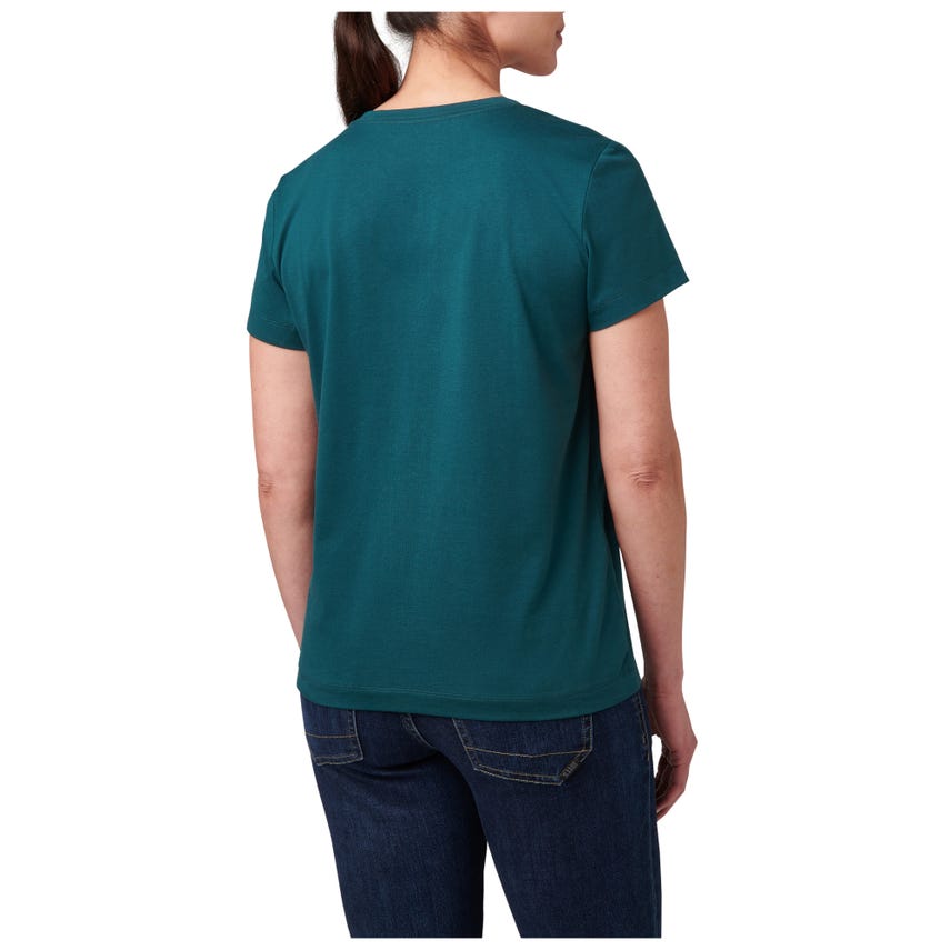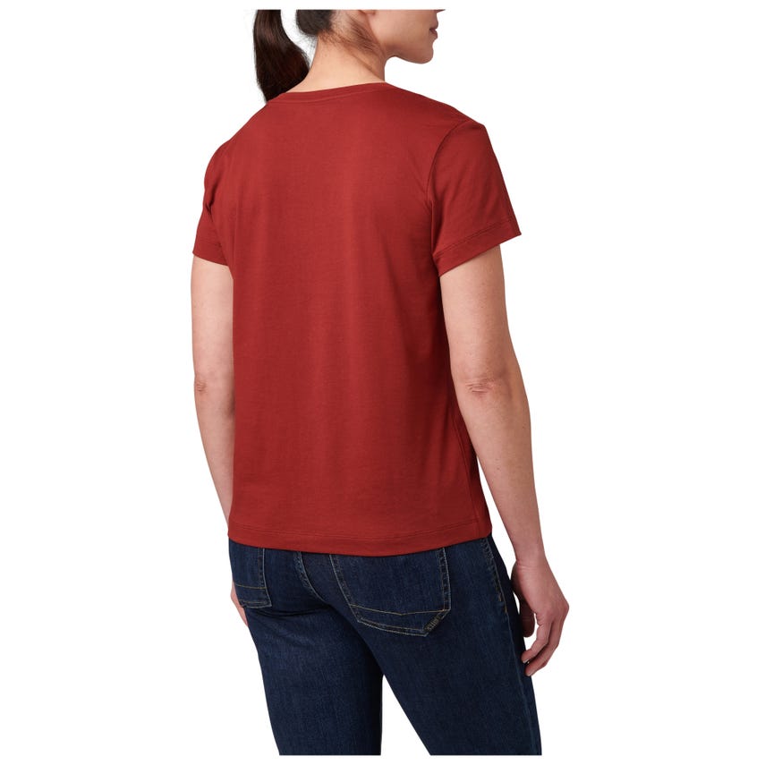 Meet your favorite new V-neck top. The wicking properties of our Essential V-Neck Short Sleeve Tee make it ideal for a variety of activities. The classically styled V-neck is made from a comfortable 60% cotton and 40% polyester blend that's lightweight and renowned for pulling sweat away. A 5.11[+]® clip label finishes out the straight hem - which is the perfect length for concealed carry. The Essential V-Neck Short Sleeve Tee can be worn tucked or untucked, by itself or as a layer underneath a button-up shirt. It pairs easily with 5.11® jeans, pants, and shorts.