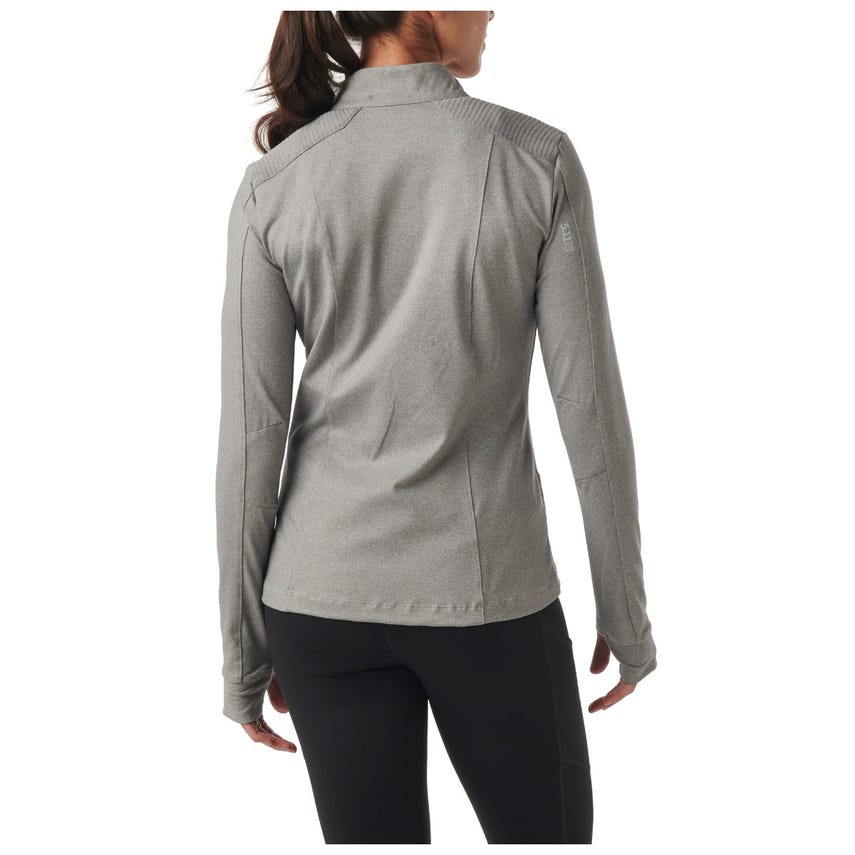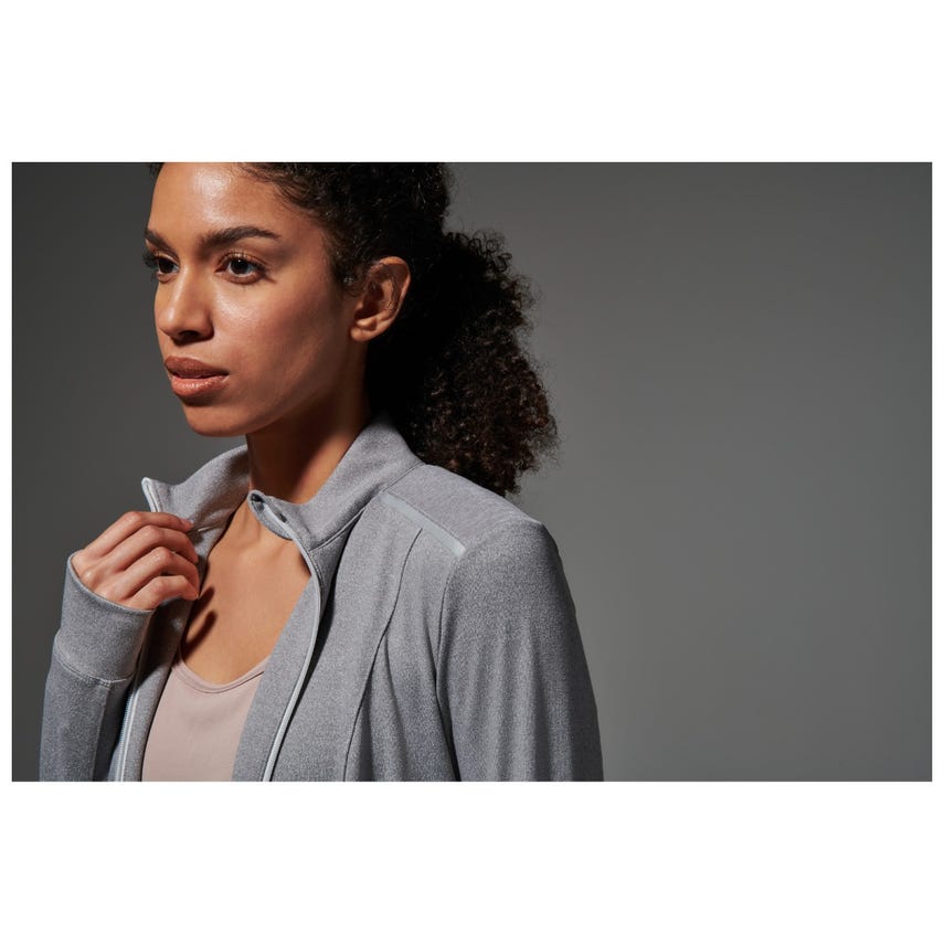For those who want the freedom of a full-zip front, our Tessa top gives you just that. With the same great functionality and styling accents as the ¼ zip version, this full zip is perfect for those who want to look good while they’re running a day of errands or out burning some calories.